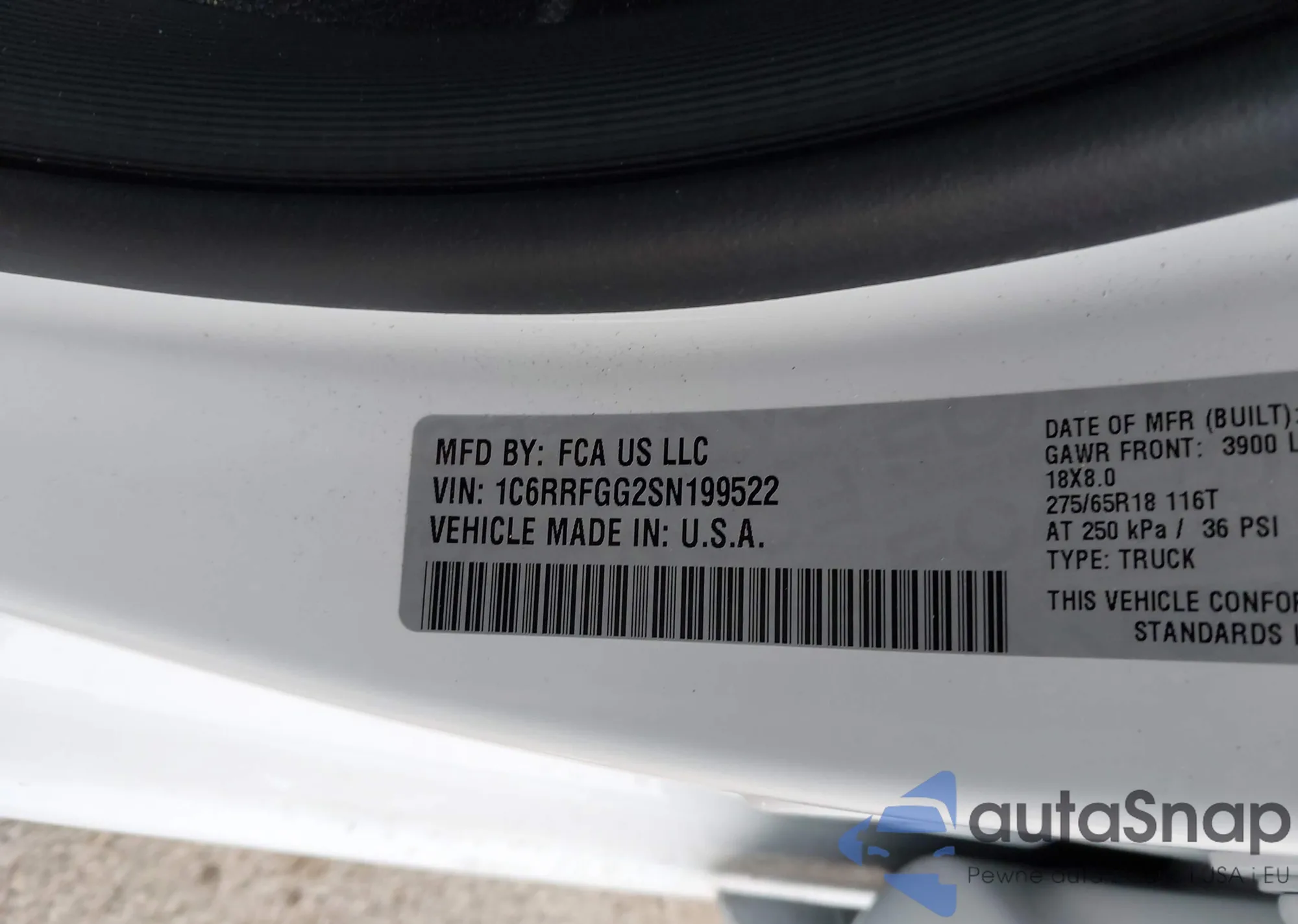 • VIN: 1C6RRFGG2SN199522