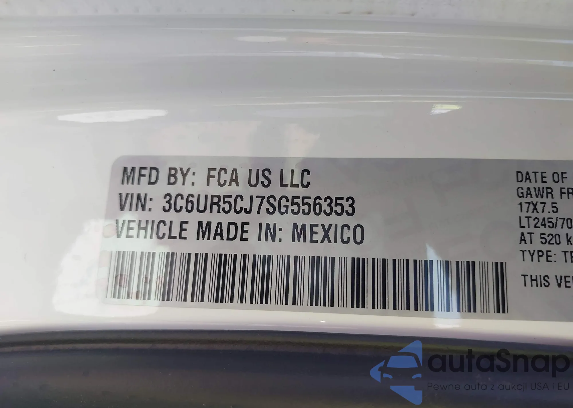 • VIN: 3C6UR5CJ7SG556353