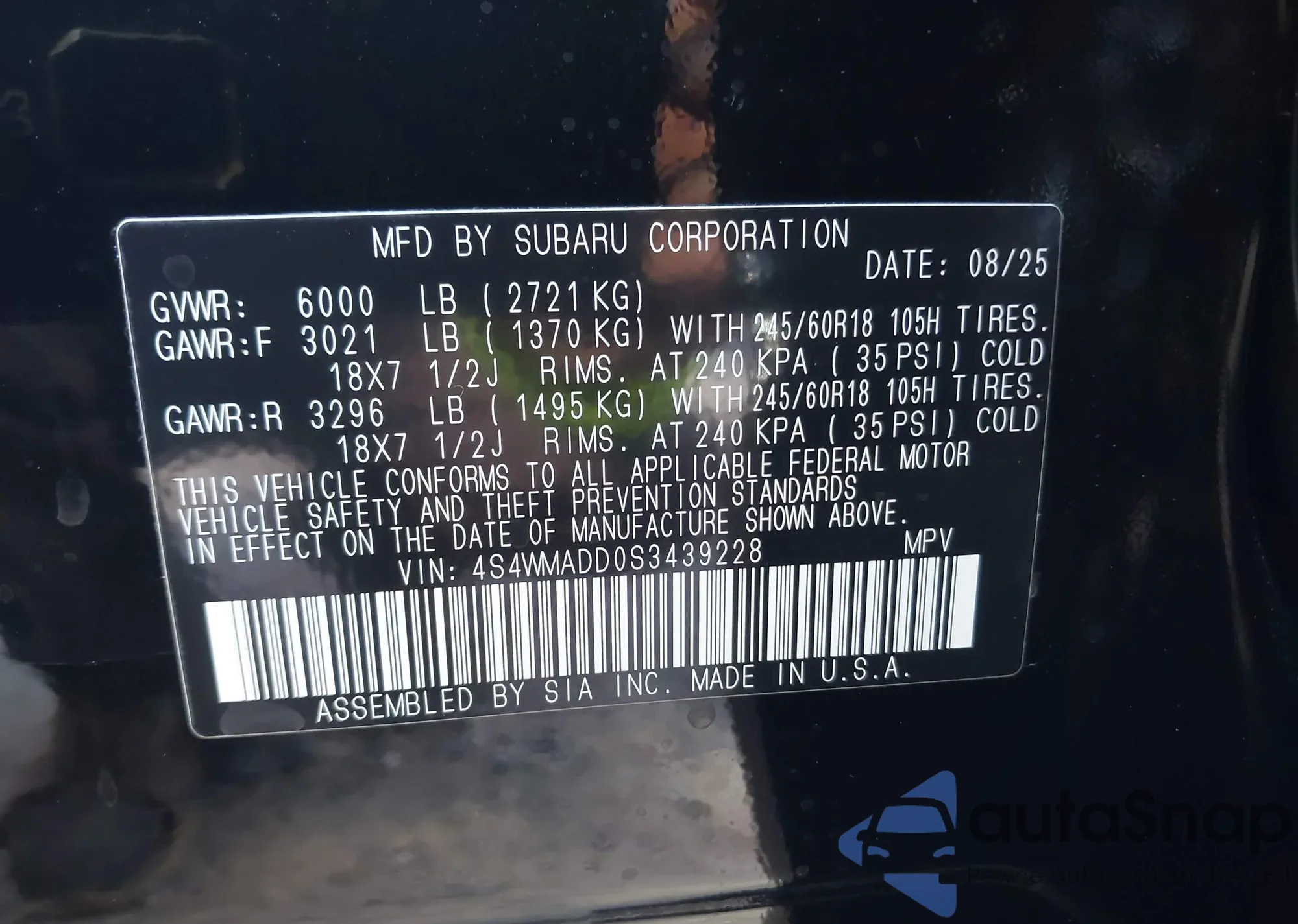 • VIN: 4S4WMADD0S3439228
