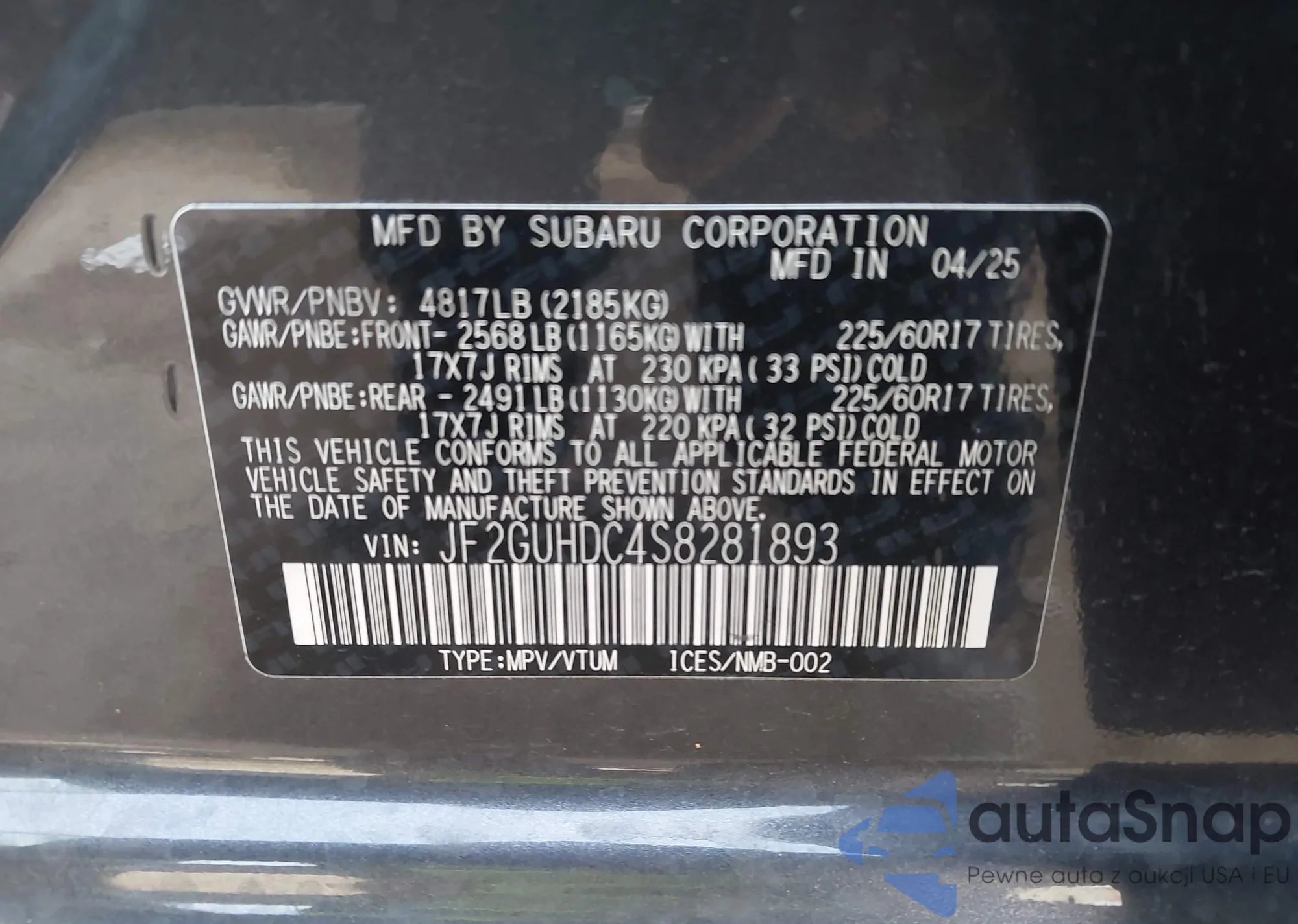 VIN: JF2GUHDC4S8281893