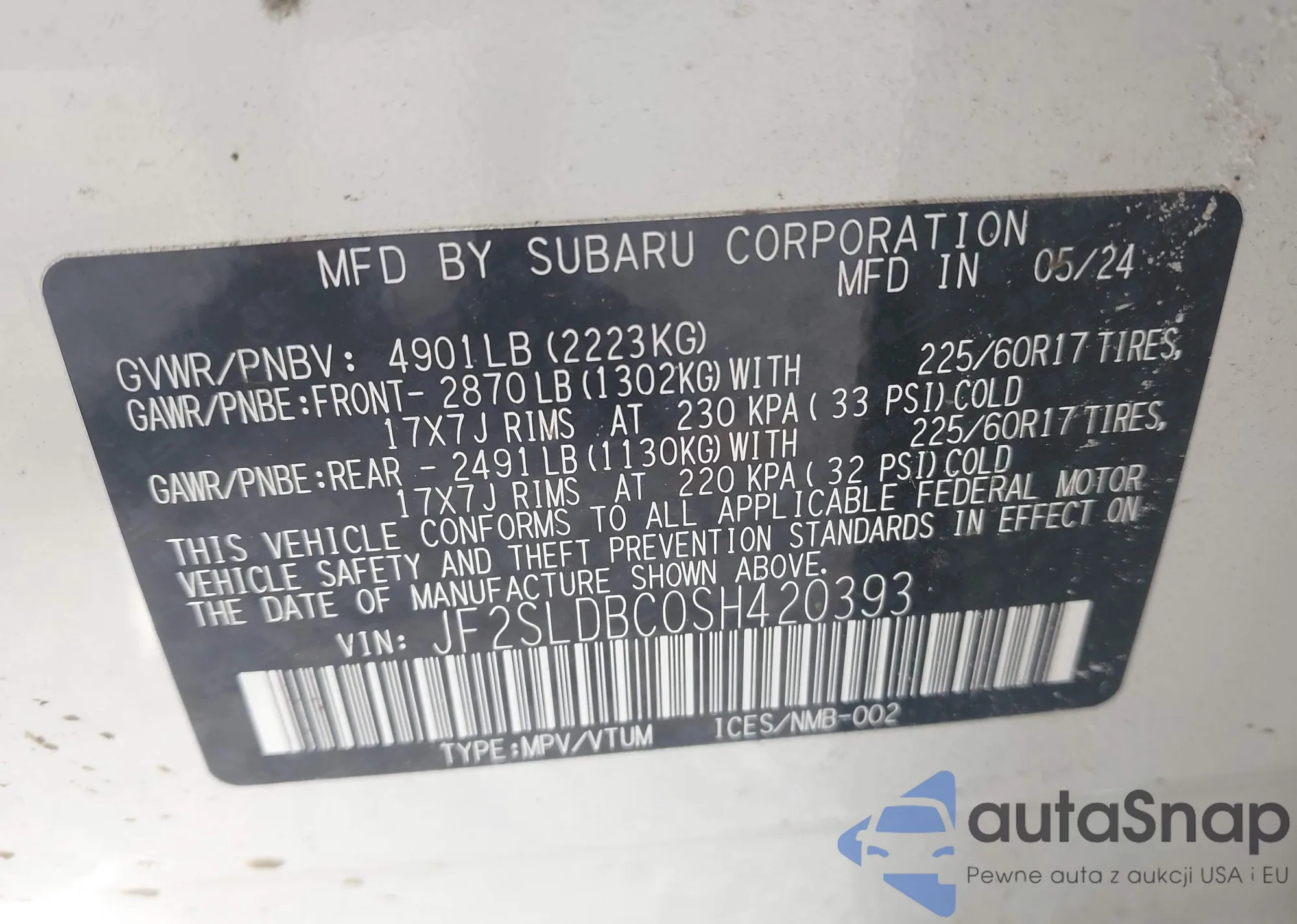 VIN: JF2SLDBC0SH420393