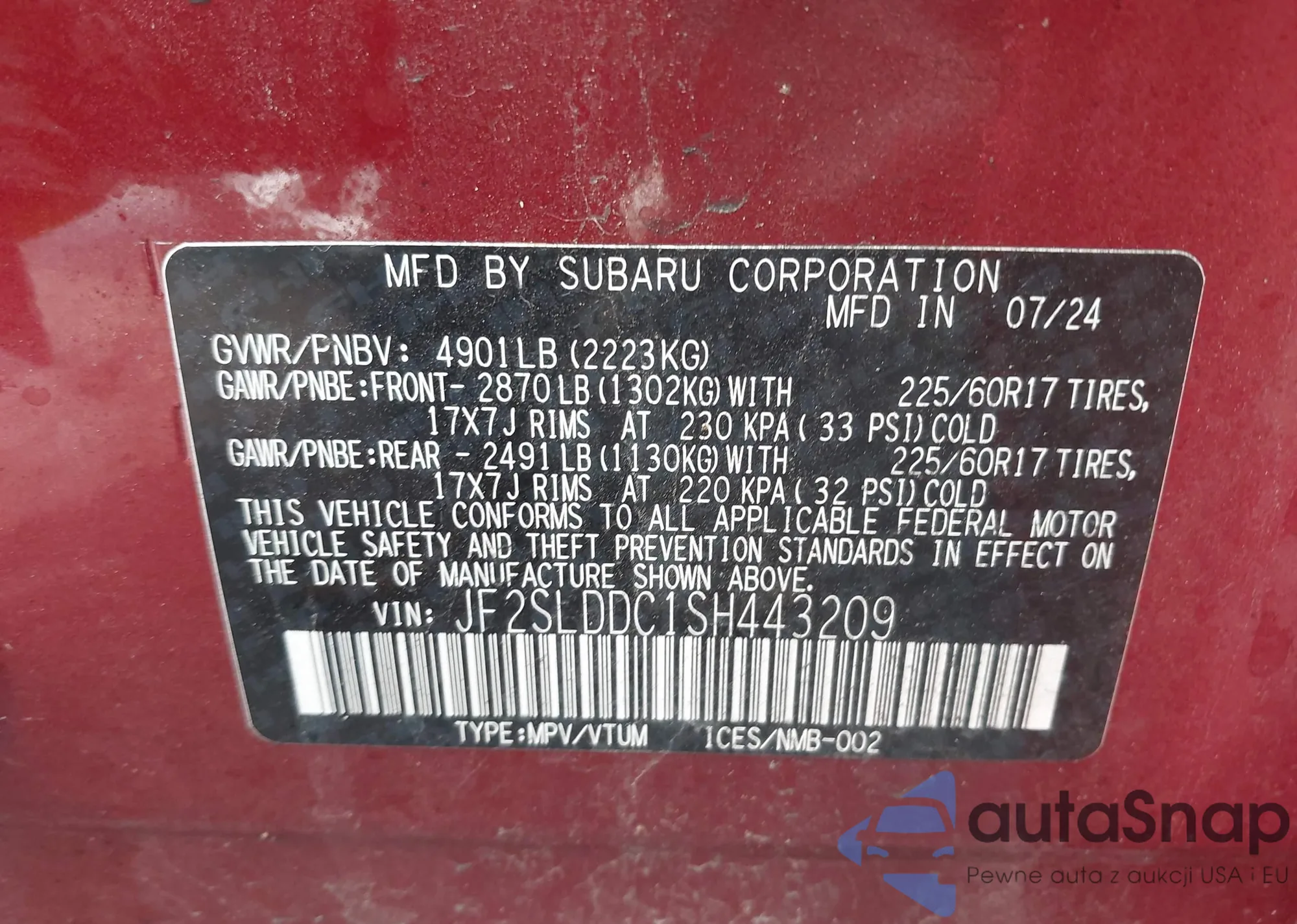VIN: JF2SLDDC1SH443209