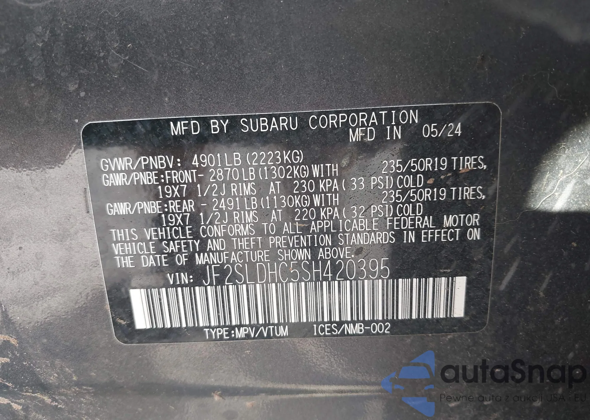 VIN: JF2SLDHC5SH420395