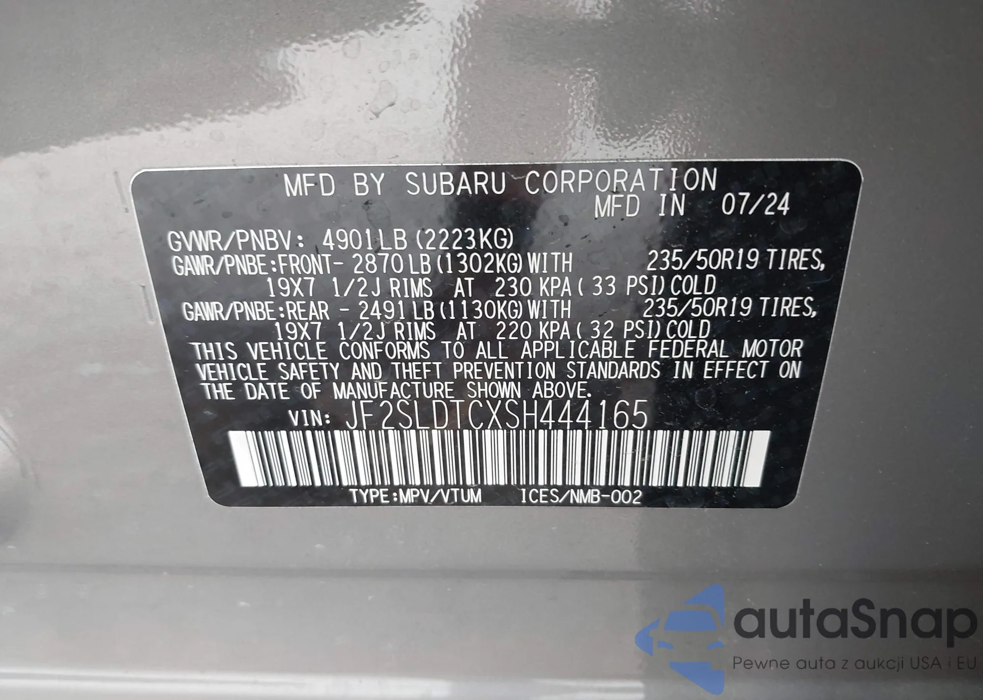 VIN: JF2SLDTCXSH444165