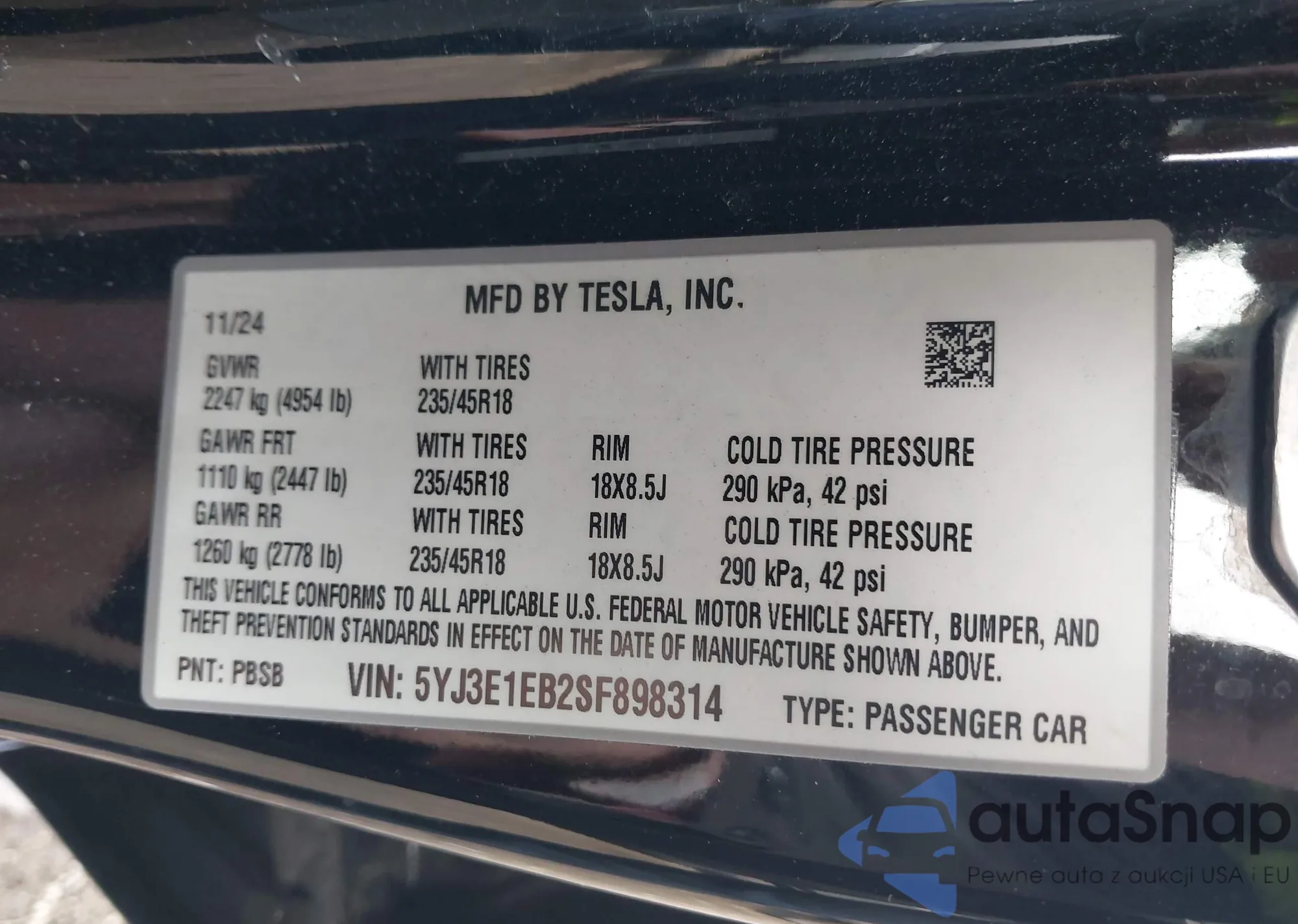 Автомобиль Tesla Model 3 2025 (VIN 5YJ3E1EB2SF898314) ранее не участвовал в торгах. Документы чистые, пробег соответствует или ниже среднего по рынку. Продаётся страховой компанией — рекомендуем покупку. Доставка в порт займет около 6–8 недель.