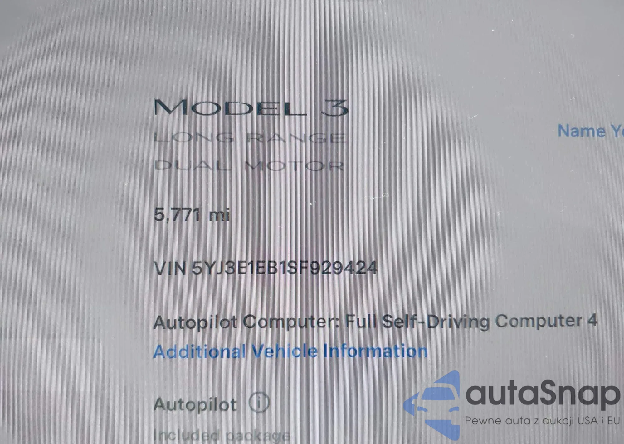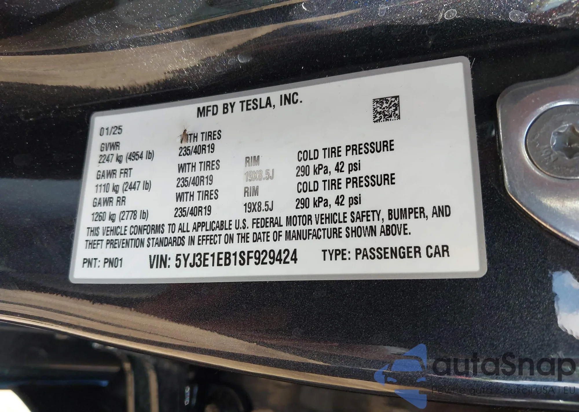 VIN: 5YJ3E1EB1SF929424