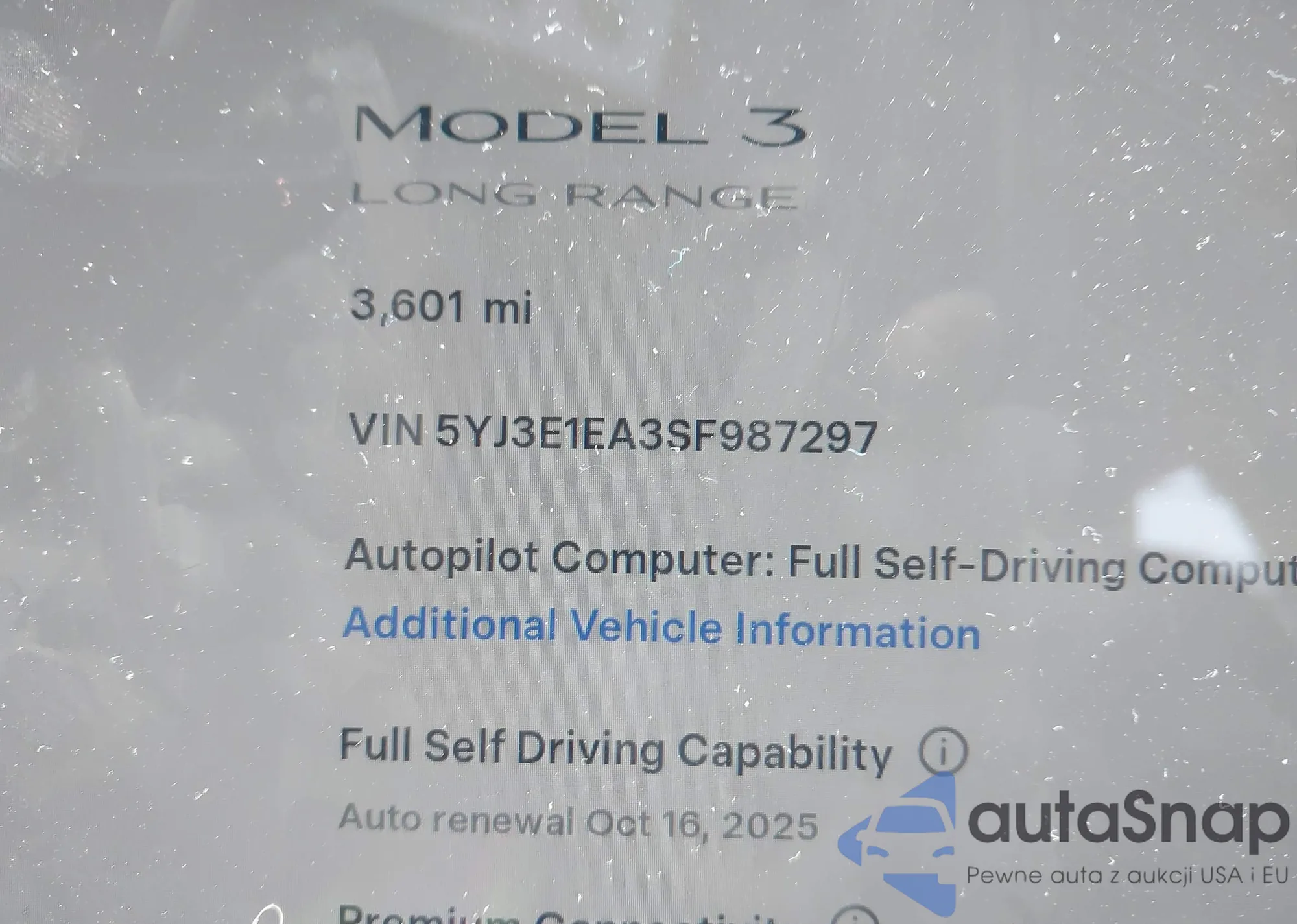 VIN: 5YJ3E1EA3SF987297