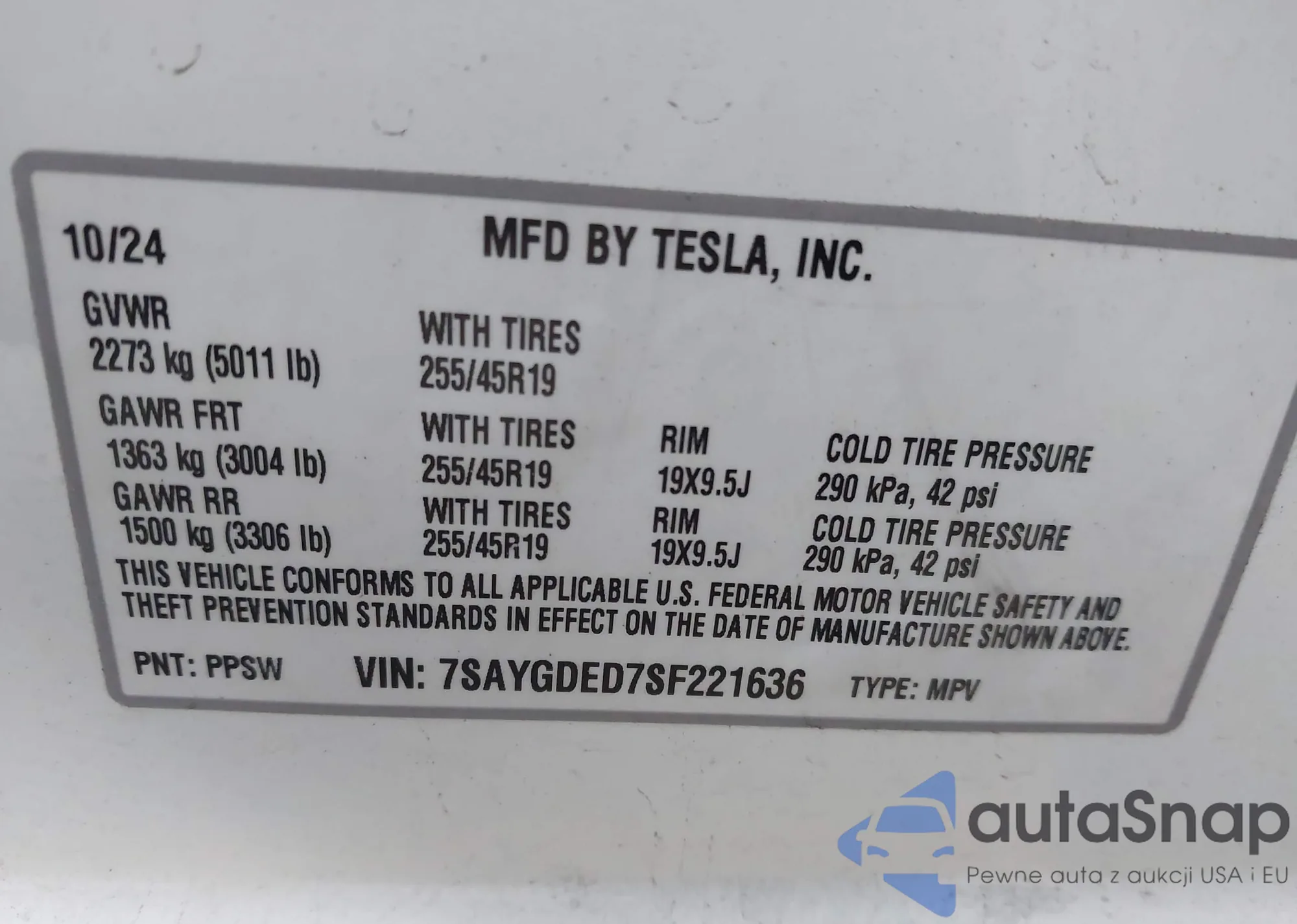 Автомобиль Tesla Model Y 2025 (VIN 7SAYGDED7SF221636) ранее не участвовал в торгах. Документы чистые, пробег соответствует или ниже среднего по рынку. Продаётся страховой компанией — рекомендуем покупку. Доставка в порт займет около 6–8 недель.