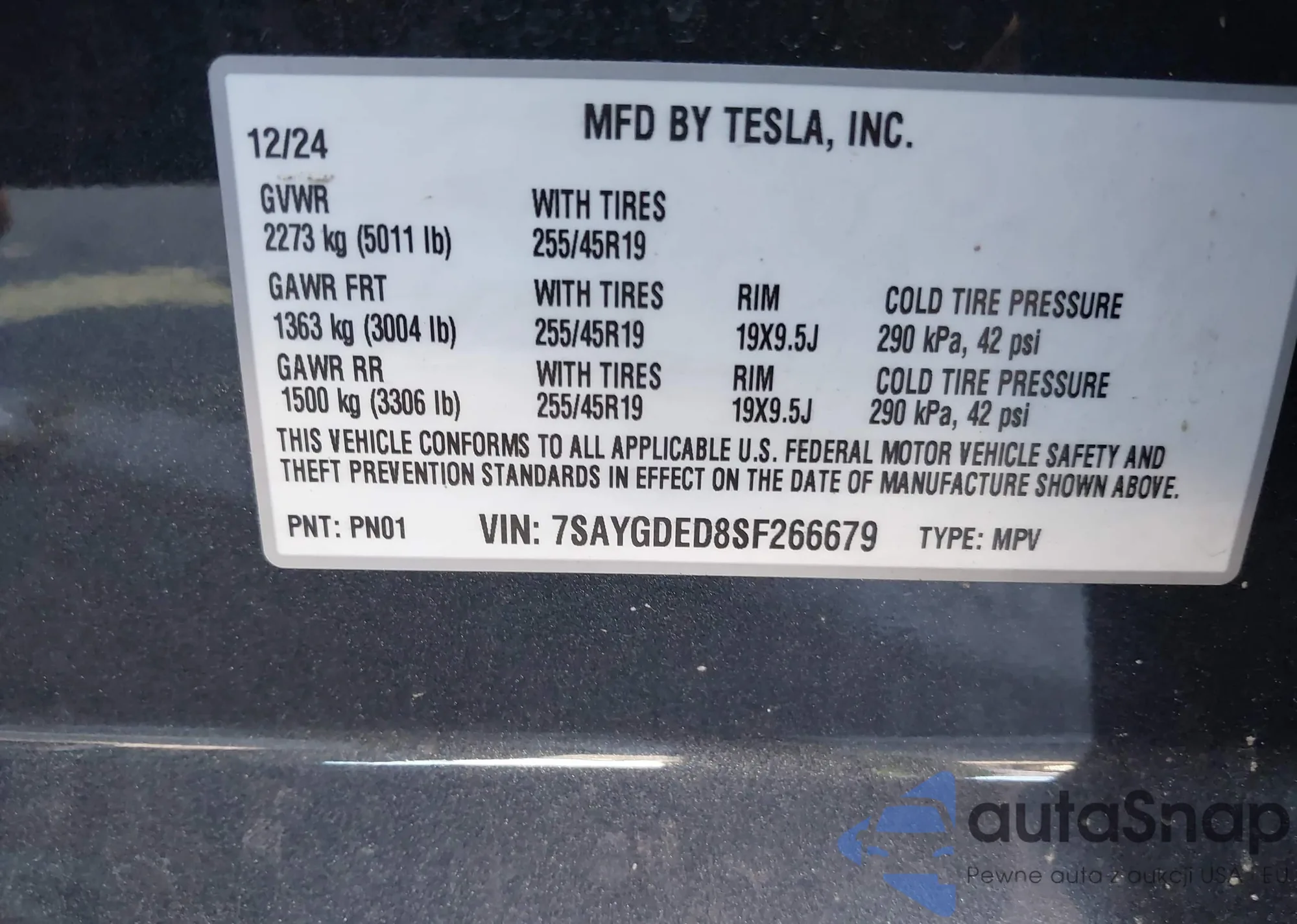 VIN: 7SAYGDED8SF266679
