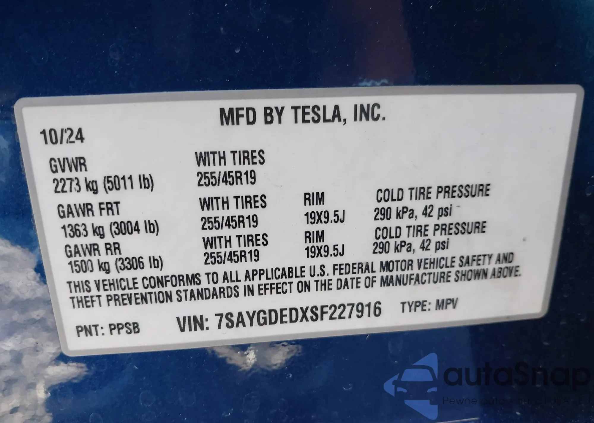 • VIN: 7SAYGDEDXSF227916
