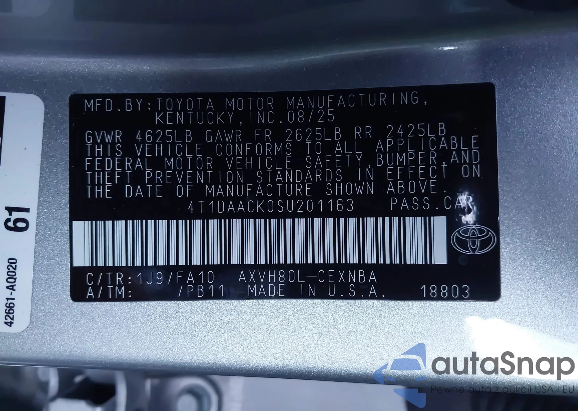 Автомобиль Toyota Camry 2025 (VIN 4T1DAACK0SU201163) ранее не участвовал в торгах. Документы чистые, пробег соответствует или ниже среднего по рынку. Продаётся страховой компанией — рекомендуем покупку. Доставка в порт займет около 6–8 недель.