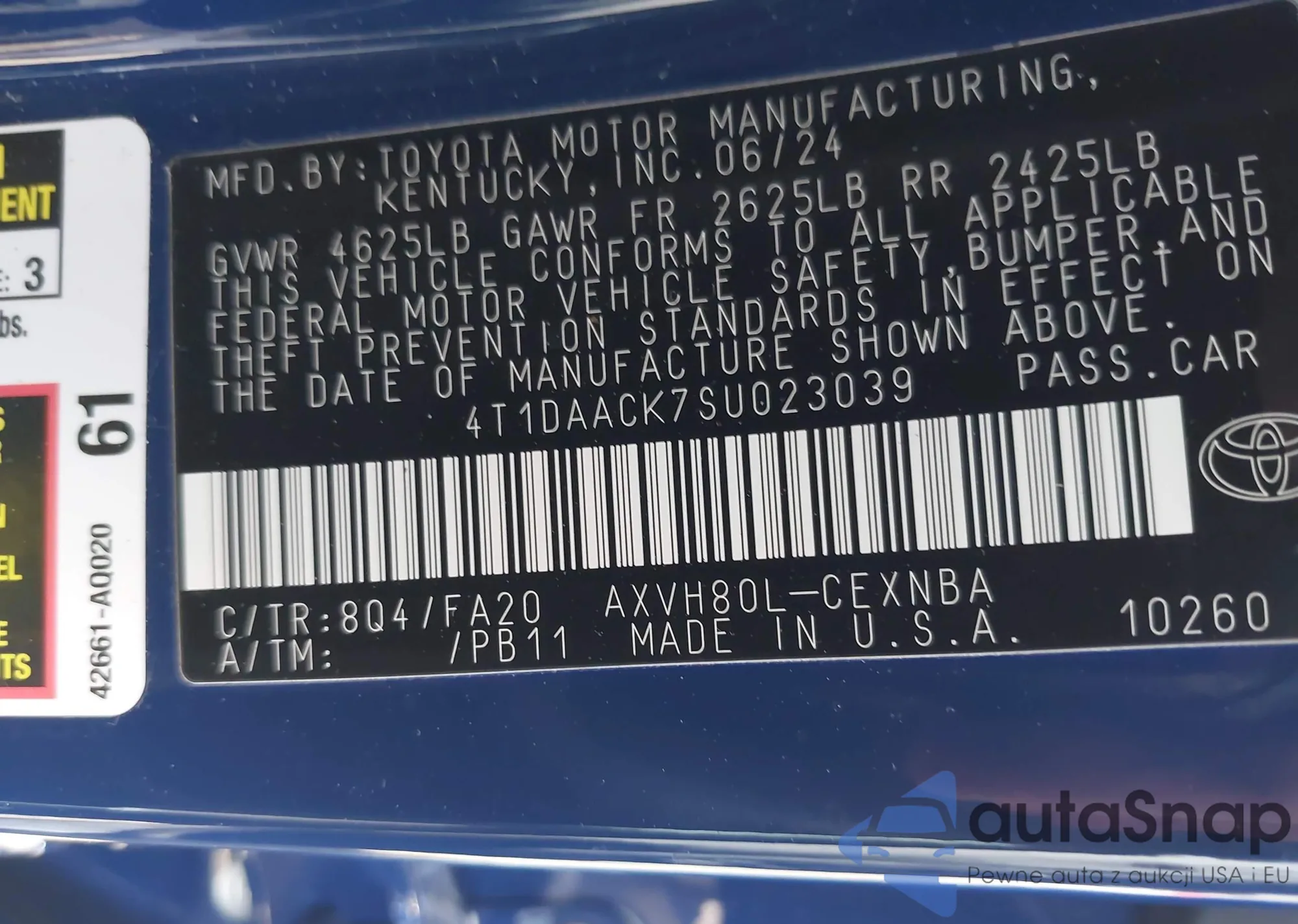 VIN: 4T1DAACK7SU023039