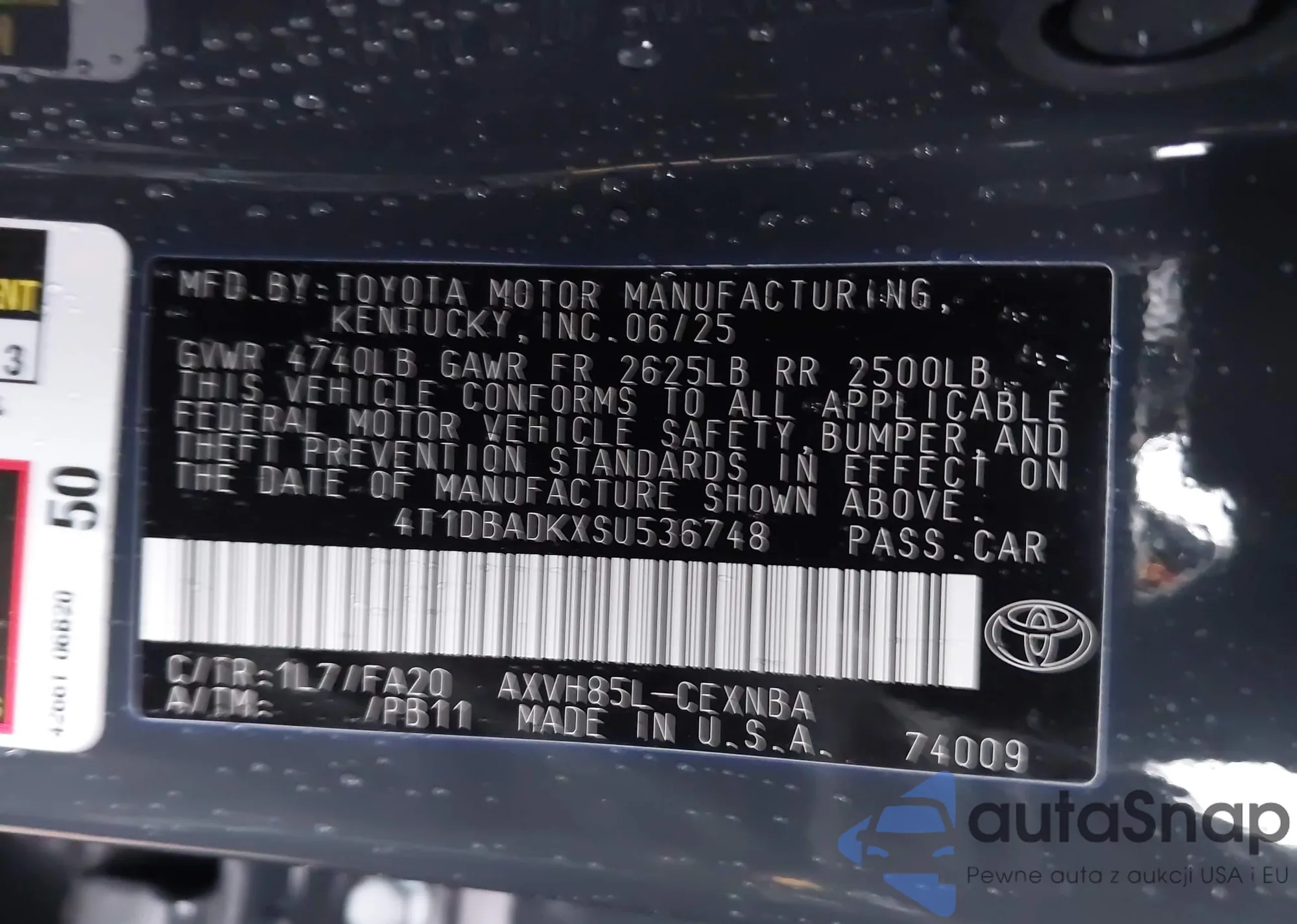 Автомобиль Toyota Camry 2025 (VIN 4T1DBADKXSU536748) ранее не участвовал в торгах. Документы чистые, пробег соответствует или ниже среднего по рынку. Продаётся страховой компанией — рекомендуем покупку. Доставка в порт займет около 6–8 недель.
