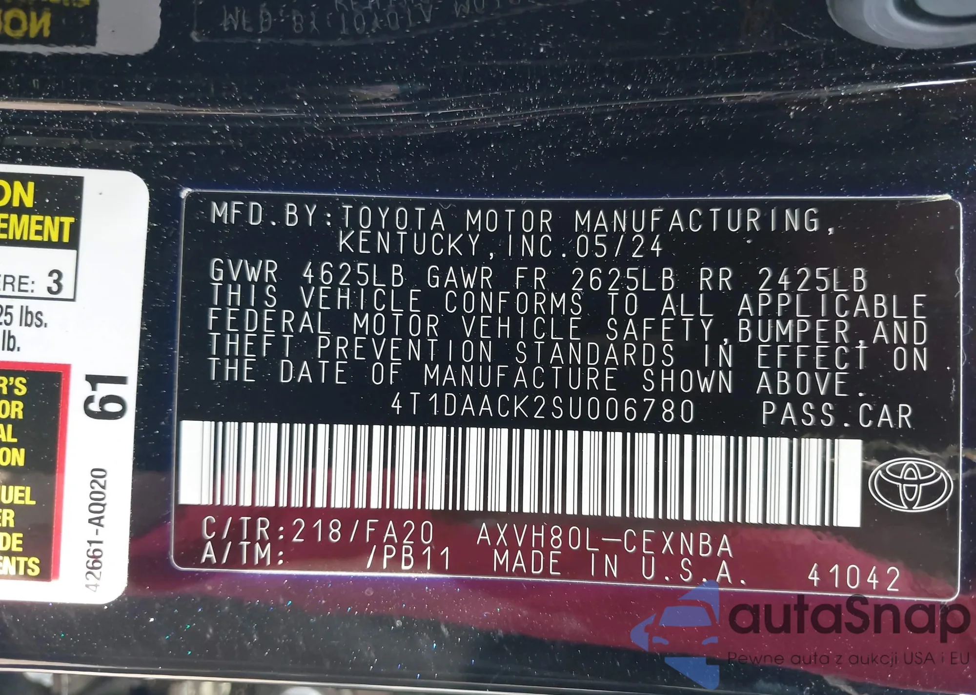 VIN: 4T1DAACK2SU006780