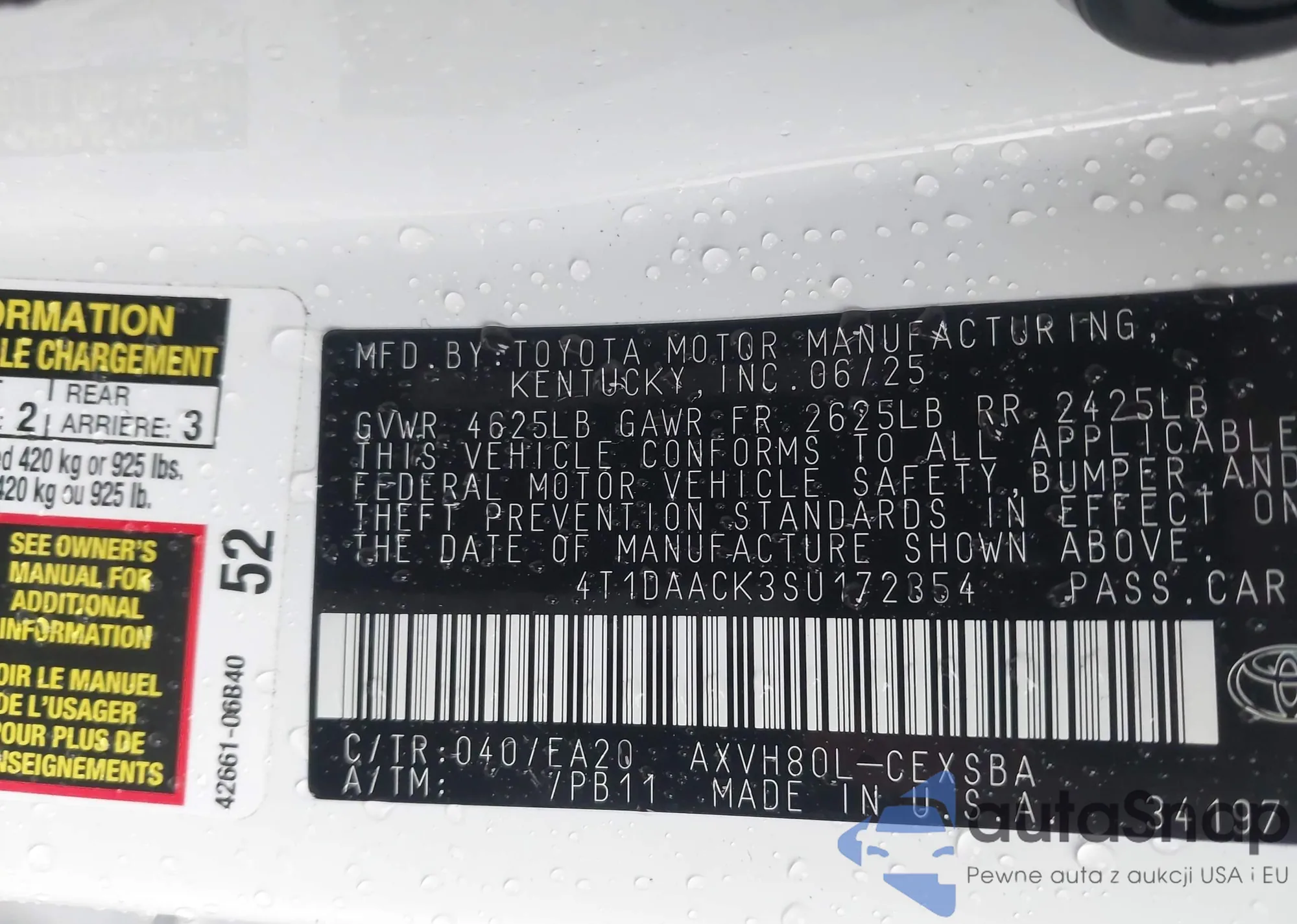 VIN: 4T1DAACK3SU172354
