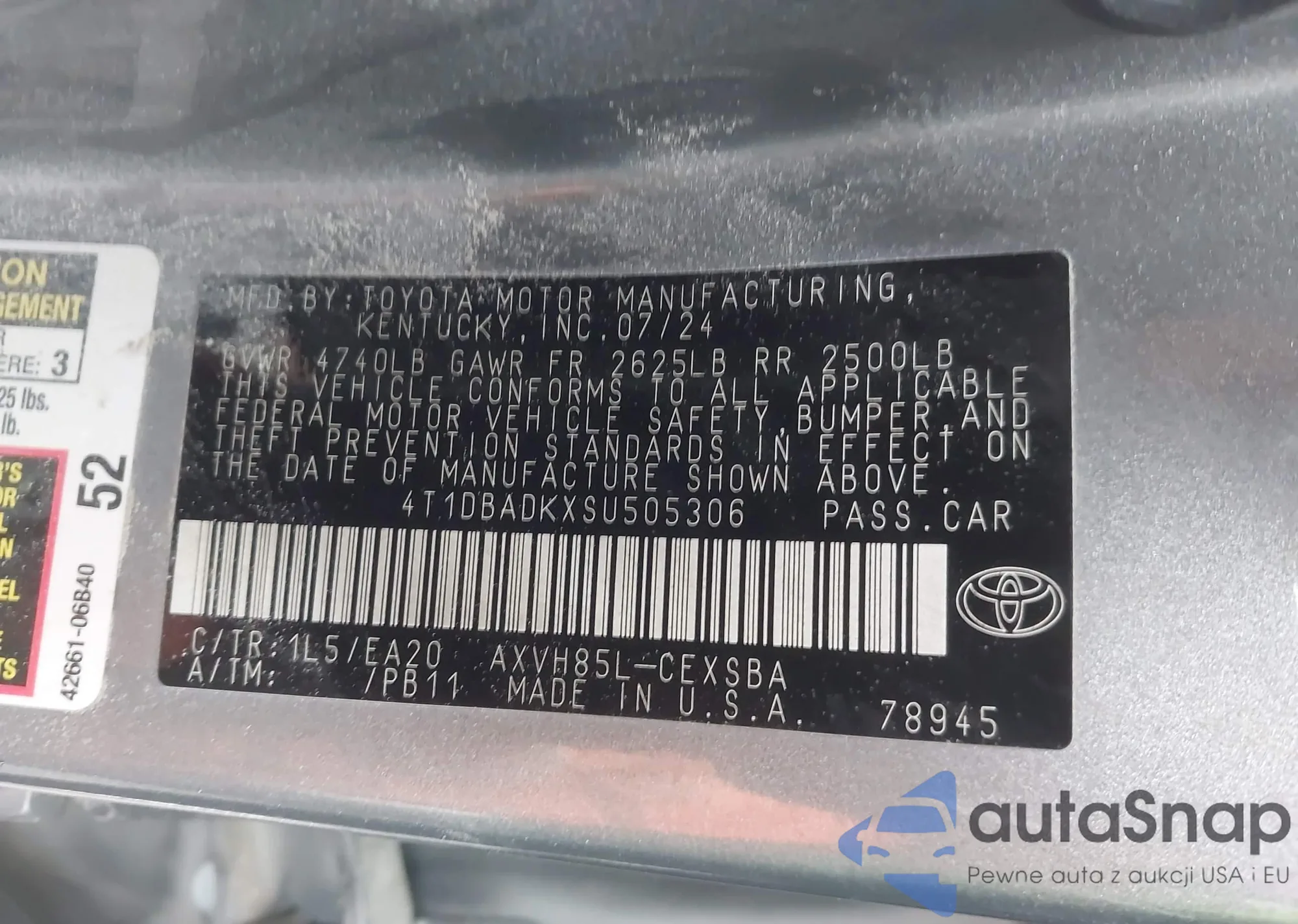 VIN: 4T1DBADKXSU505306