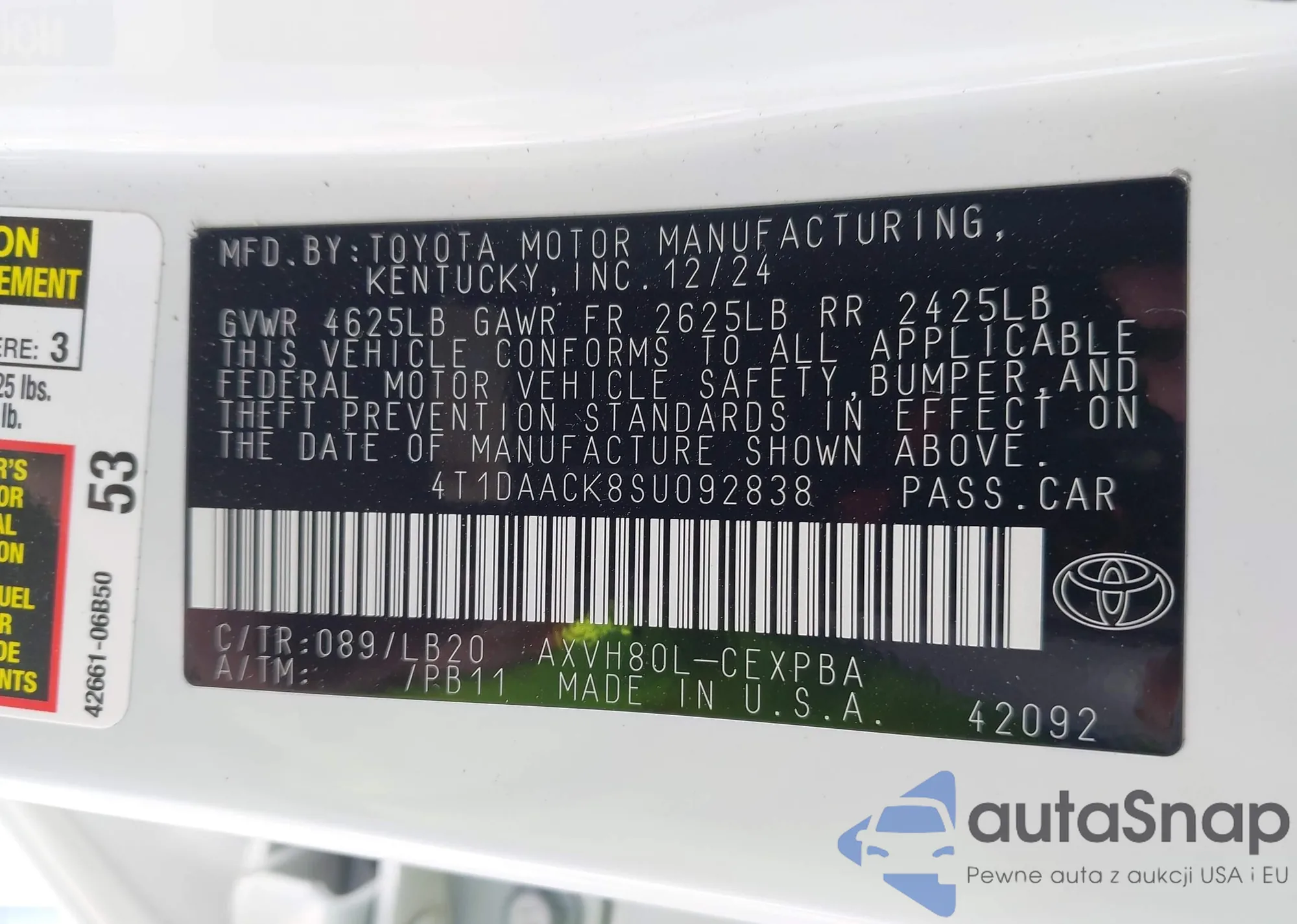 VIN: 4T1DAACK8SU092838