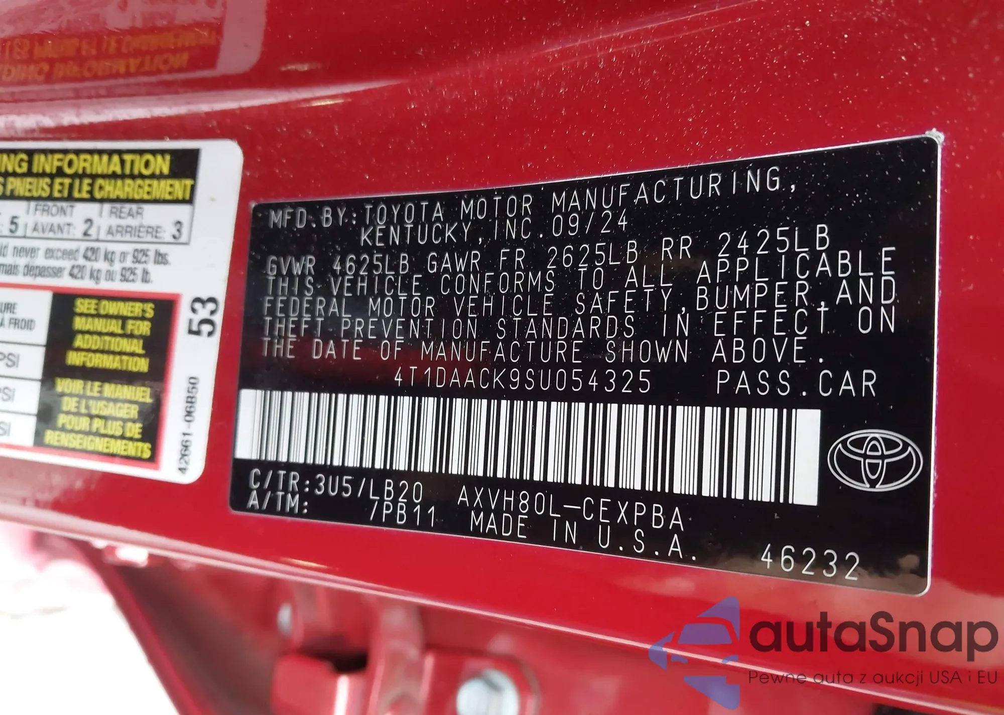 VIN: 4T1DAACK9SU054325