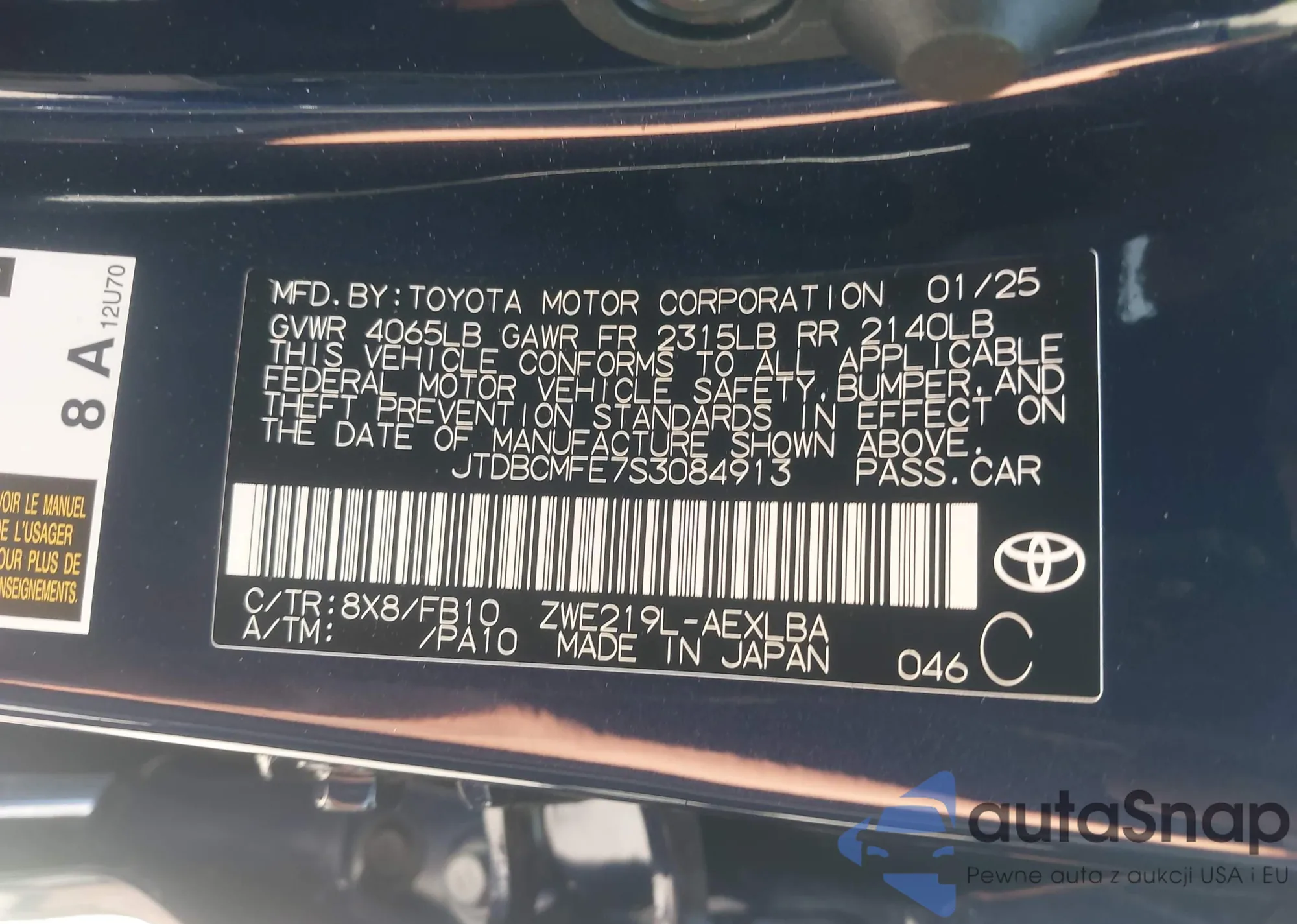 VIN: JTDBCMFE7S3084913