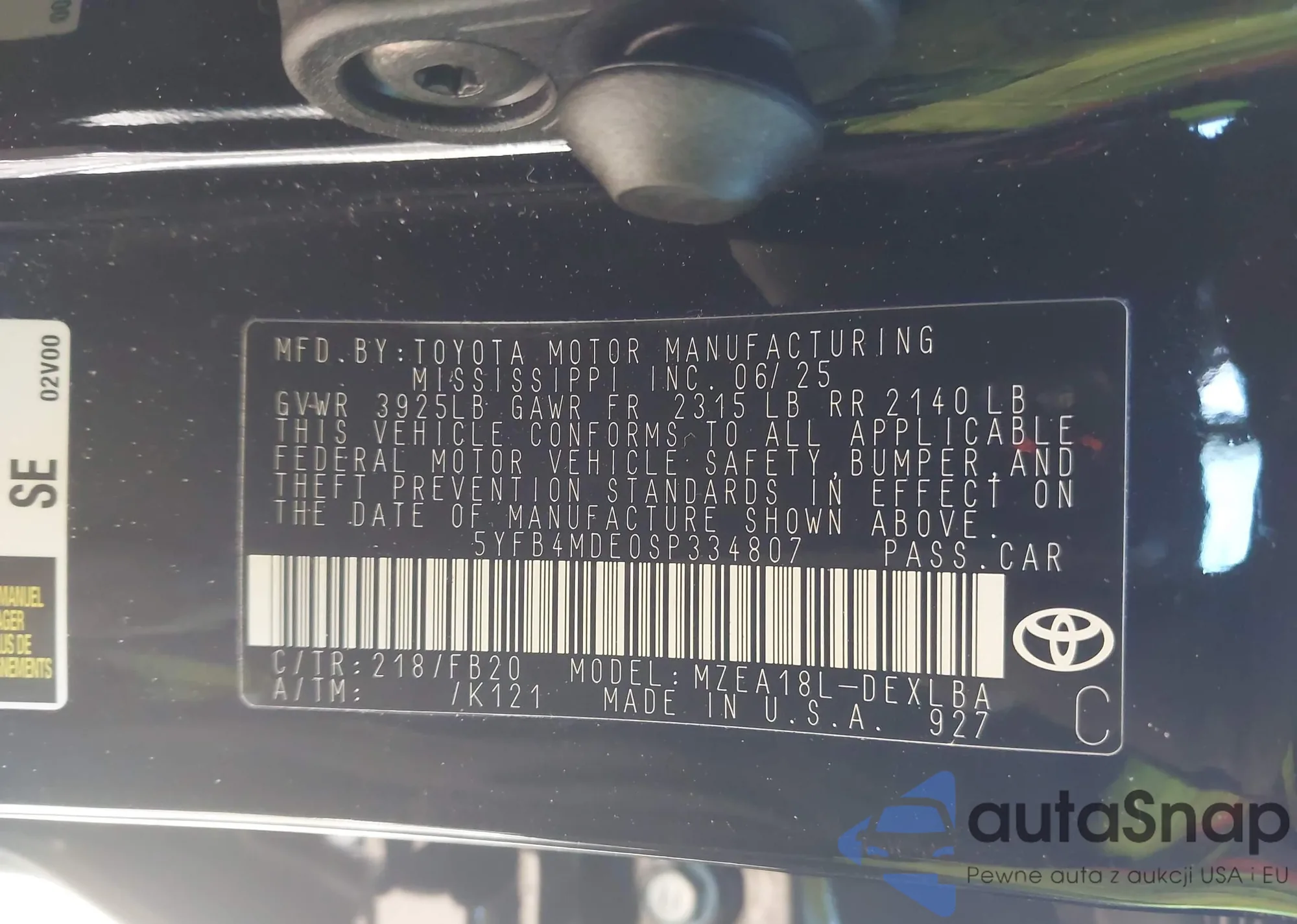Автомобиль Toyota Corolla 2025 (VIN 5YFB4MDE0SP334807) ранее не участвовал в торгах. Документы чистые, пробег соответствует или ниже среднего по рынку. Продаётся страховой компанией — рекомендуем покупку. Доставка в порт займет около 6–8 недель.