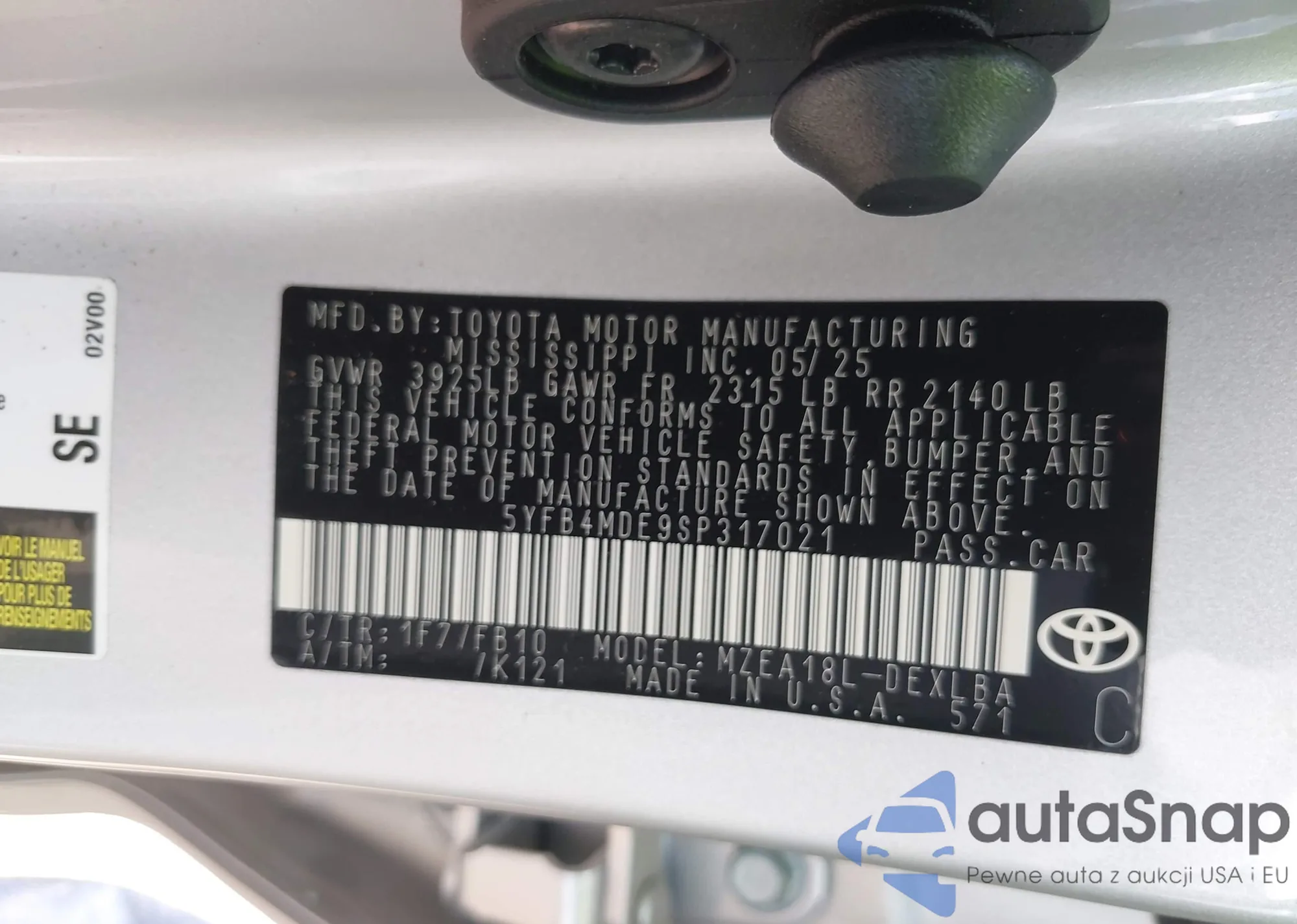 VIN: 5YFB4MDE9SP317021