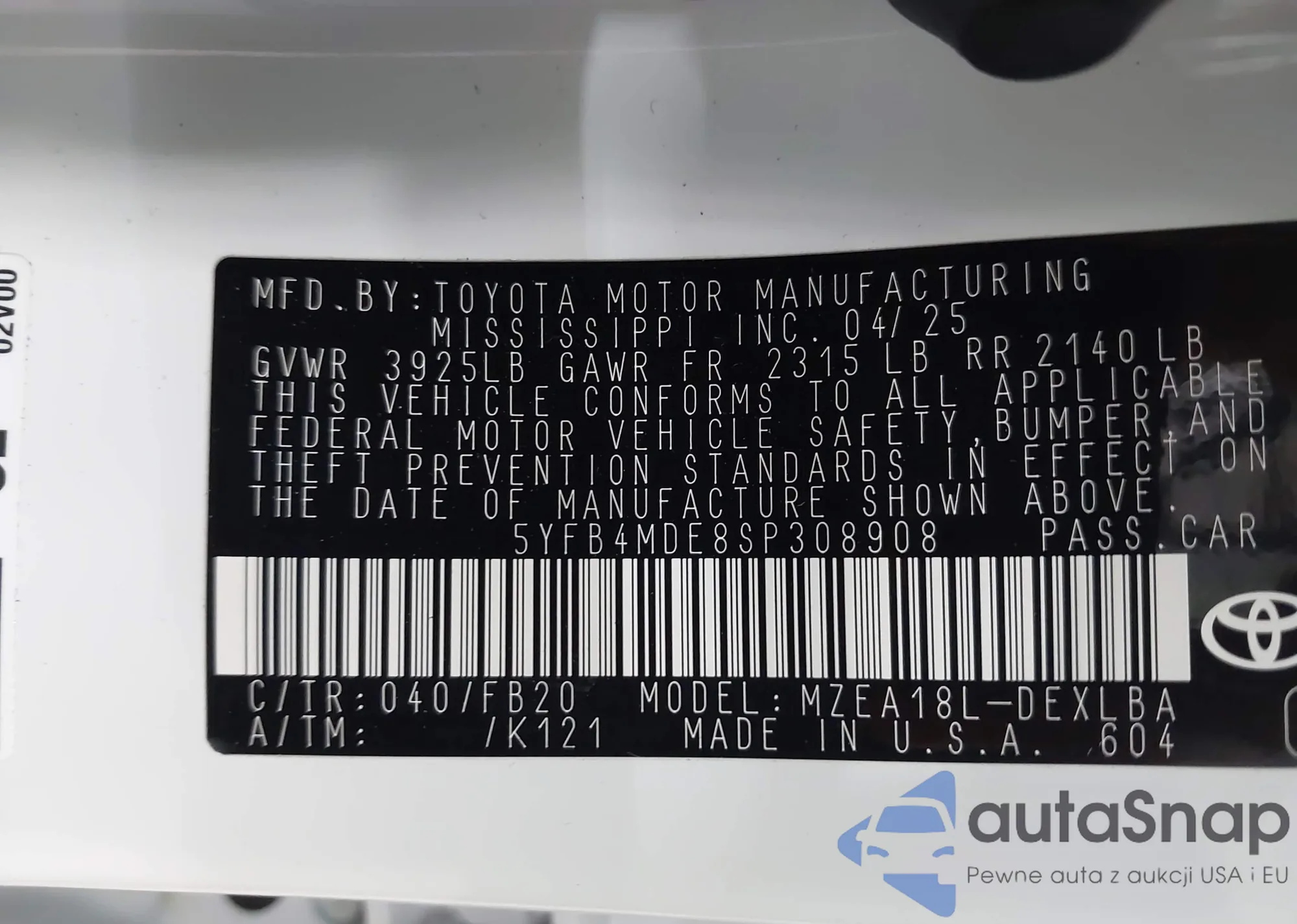 VIN: 5YFB4MDE8SP308908