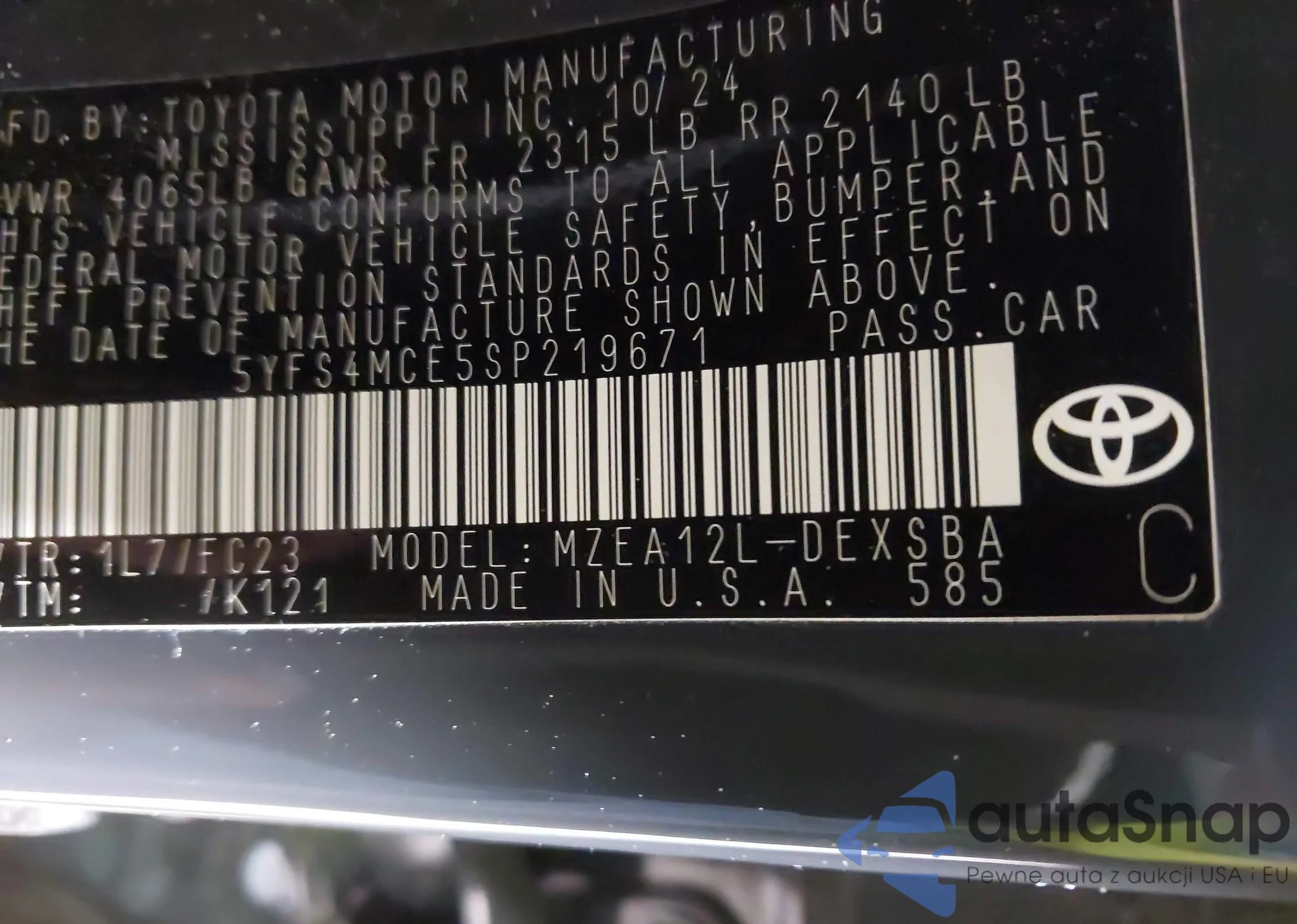 VIN: 5YFS4MCE5SP219671