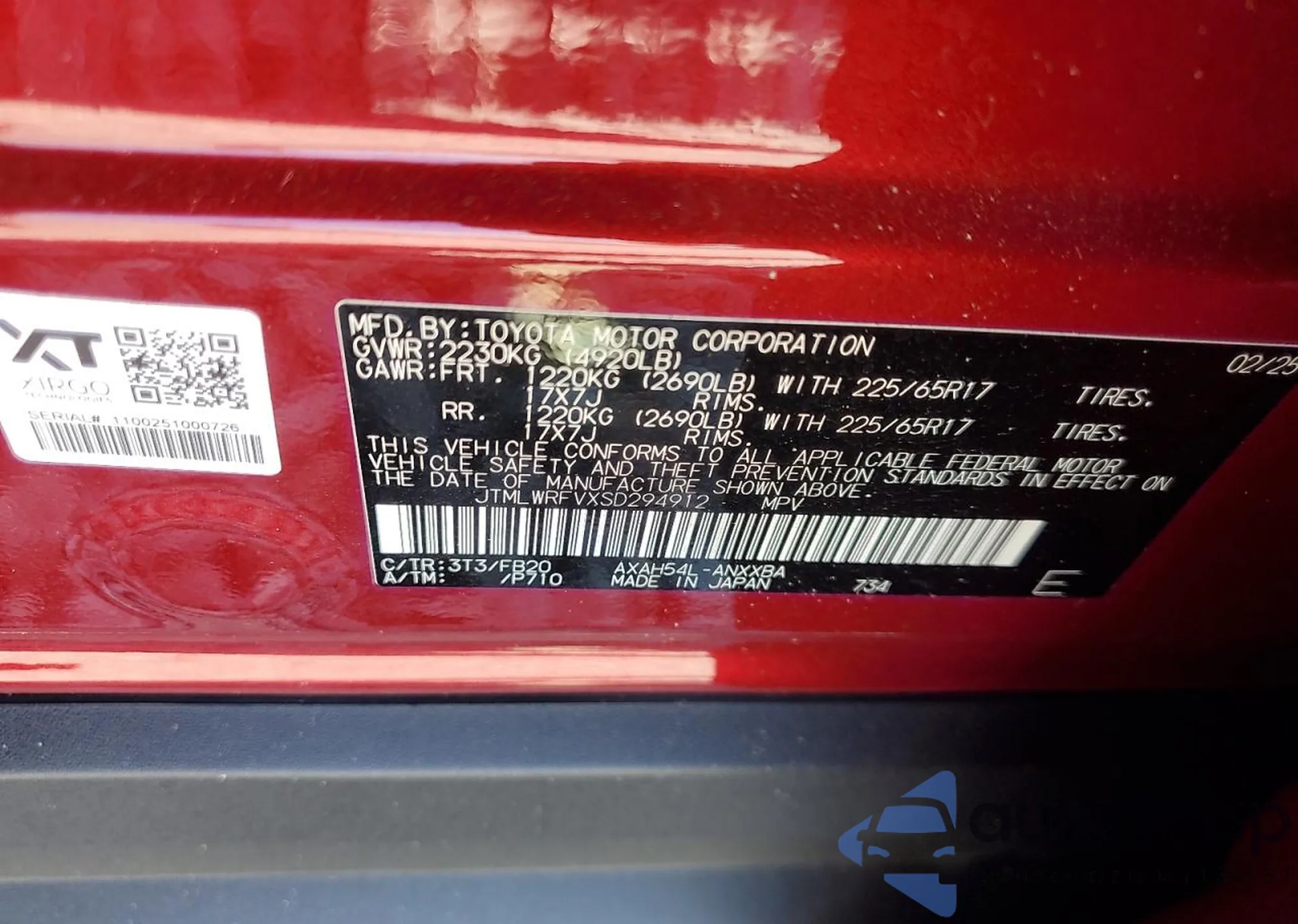 VIN: JTMLWRFVXSD294912