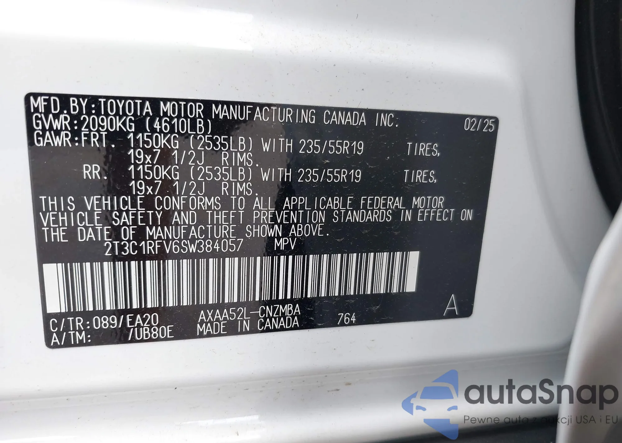 VIN: 2T3C1RFV6SW384057
