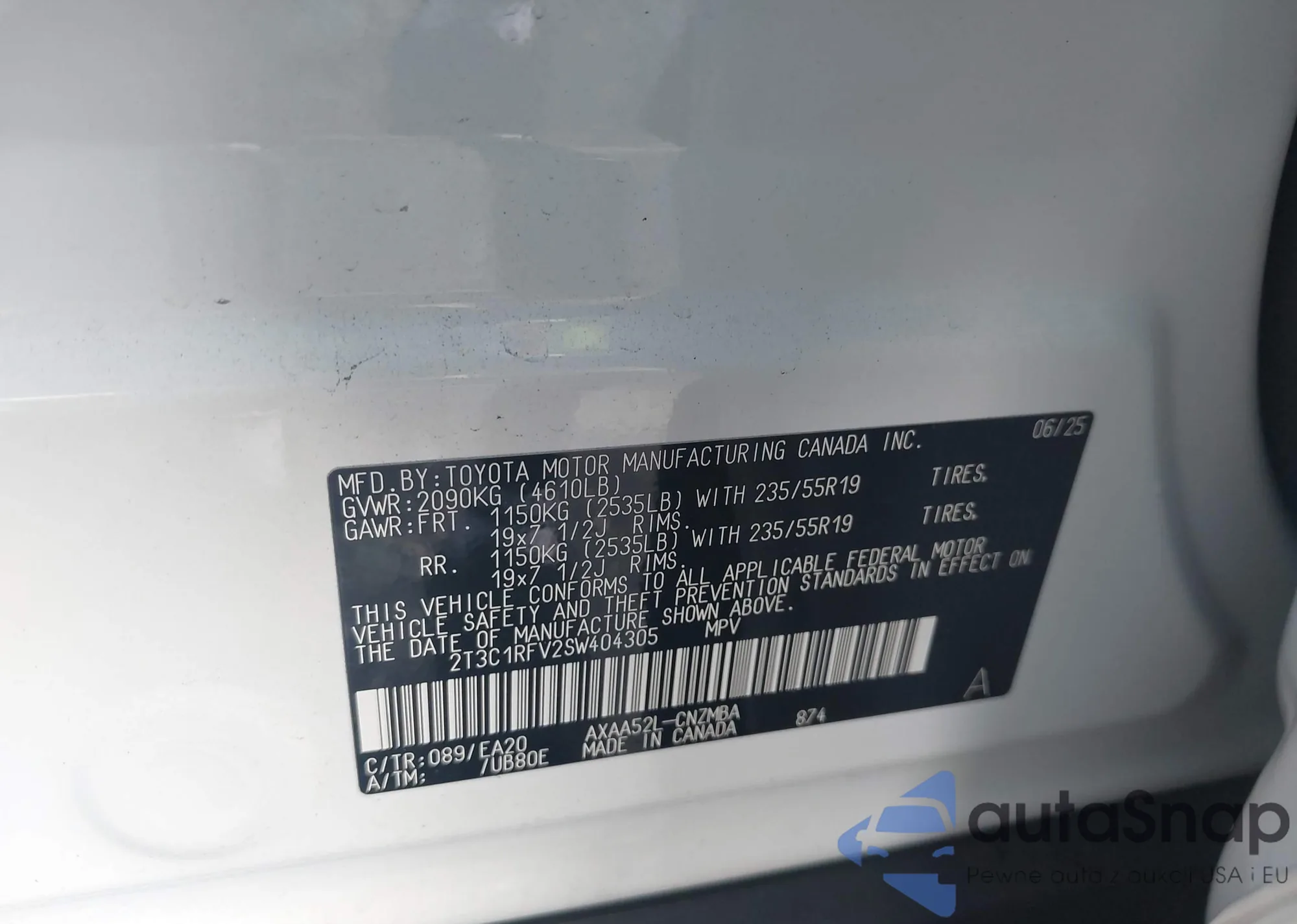 Автомобиль Toyota RAV 4 2025 (VIN 2T3C1RFV2SW404305) ранее не участвовал в торгах. Документы чистые, пробег соответствует или ниже среднего по рынку. Продаётся страховой компанией — рекомендуем покупку. Доставка в порт займет около 6–8 недель.