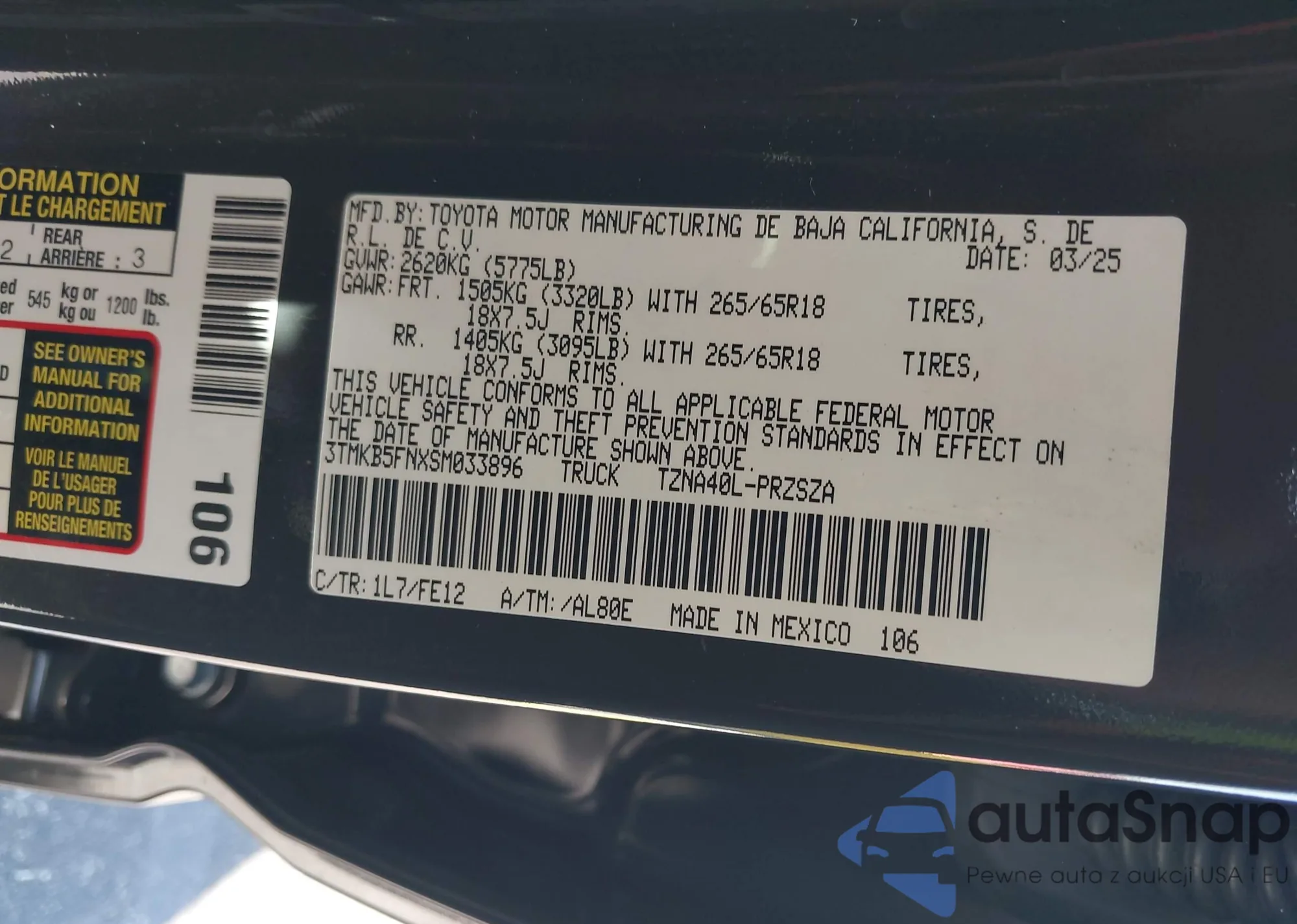 Автомобиль Toyota Tacoma 2025 (VIN 3TMKB5FNXSM033896) уже участвовал в торгах 1 раз(а) и/или продаётся непроверенным продавцом. Рекомендуем проверить отчет Carfax и подтвердить возможность регистрации перед покупкой.