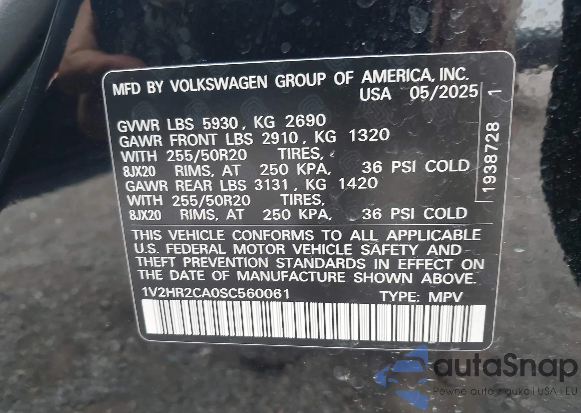 VIN: 1V2HR2CA0SC560061