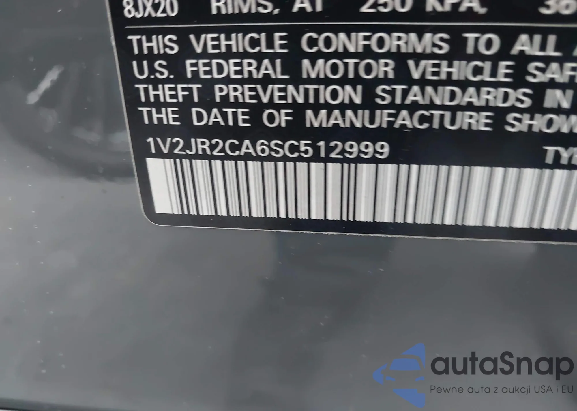 • VIN: 1V2JR2CA6SC512999