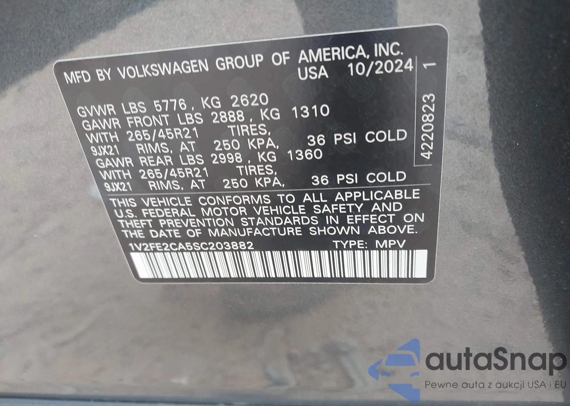 VIN: 1V2FE2CA5SC203882