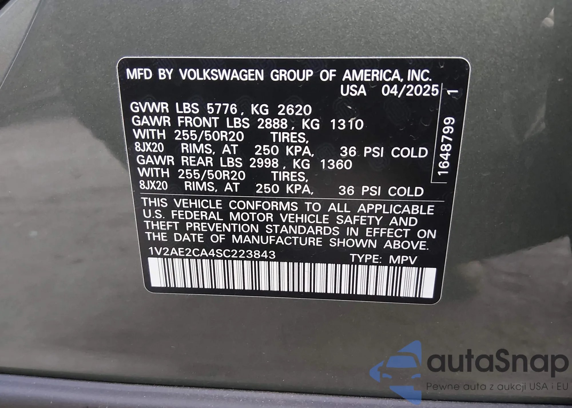 • VIN: 1V2AE2CA4SC223843