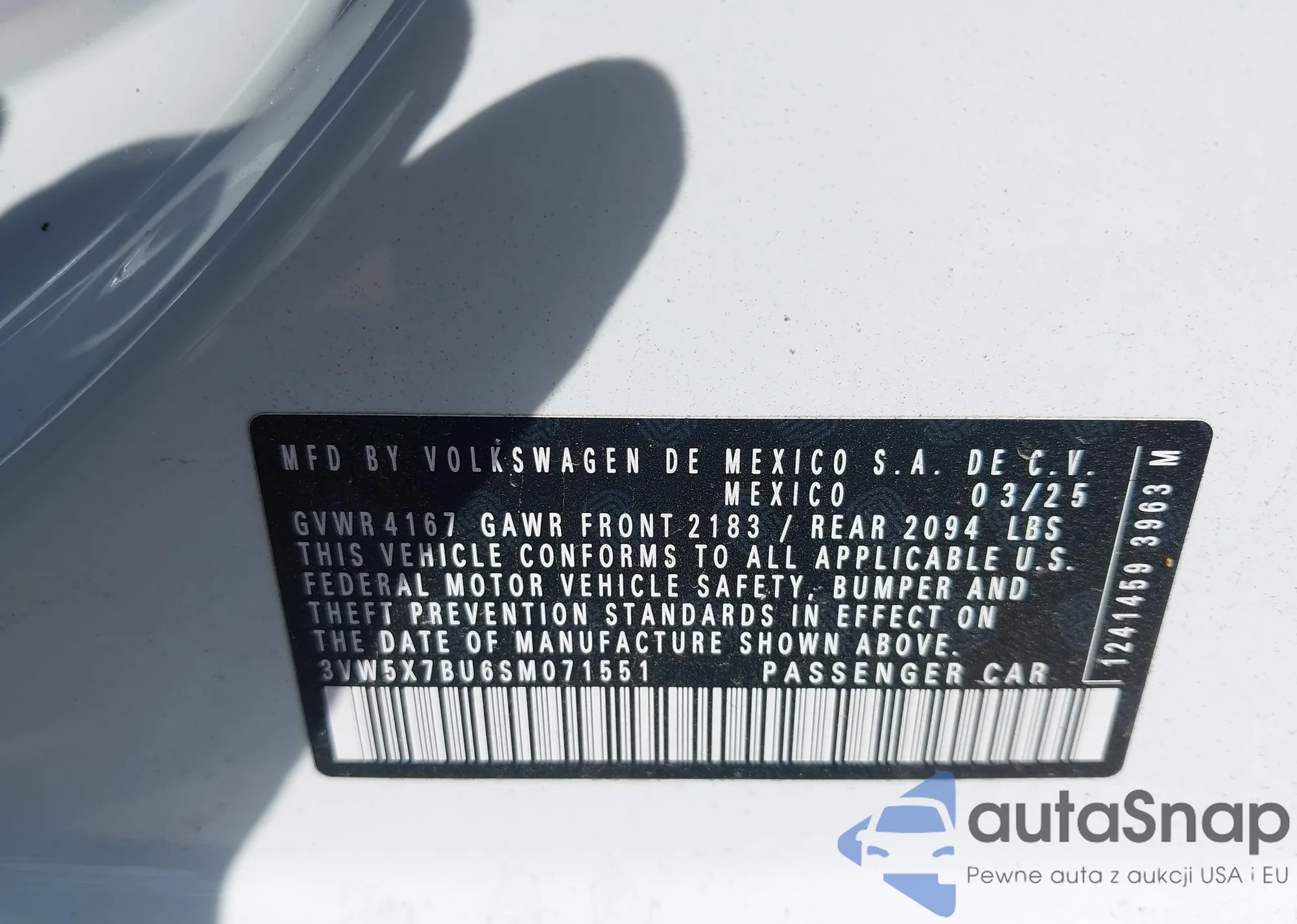VIN: 3VW5X7BU6SM071551