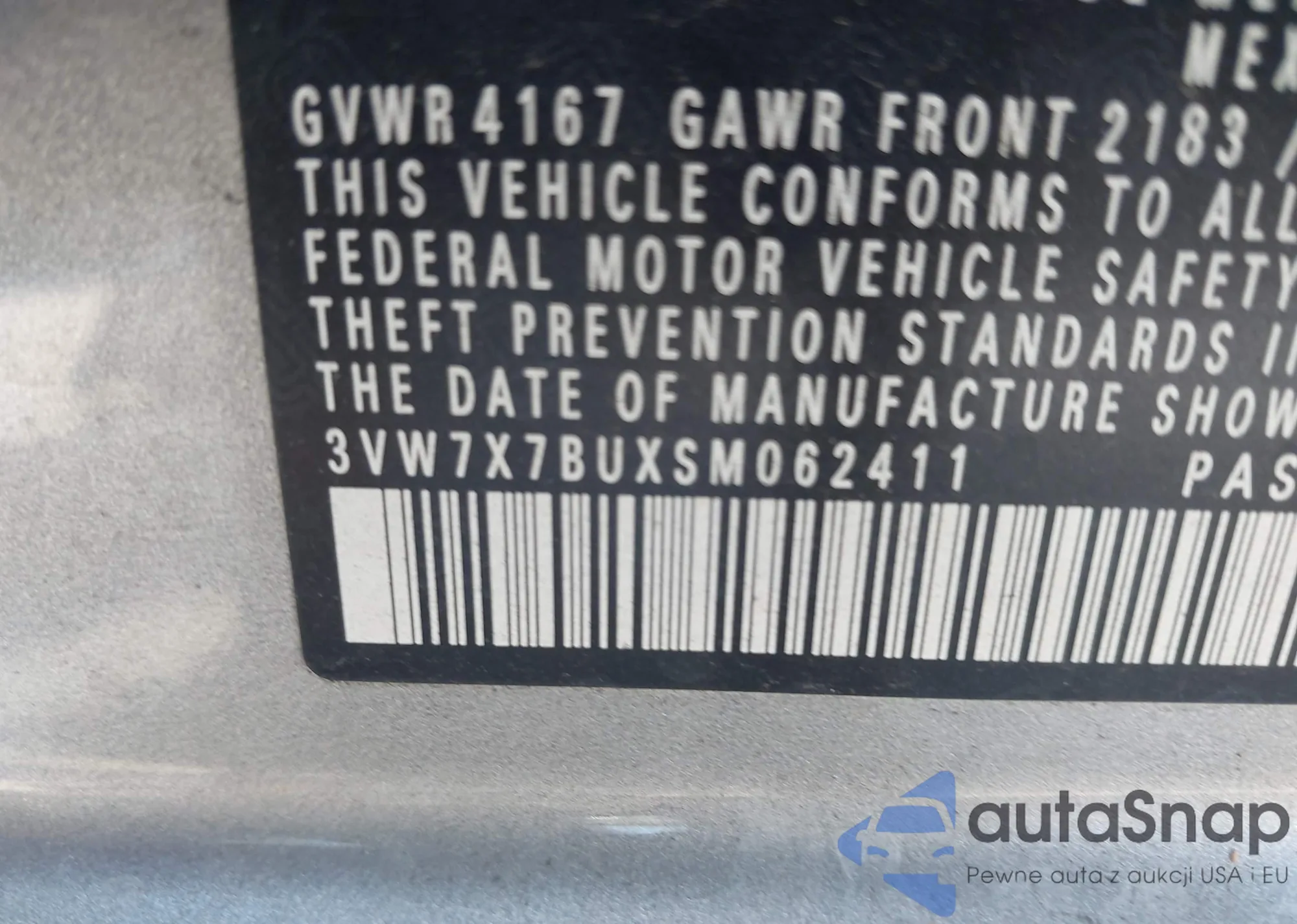 • VIN: 3VW7X7BUXSM062411