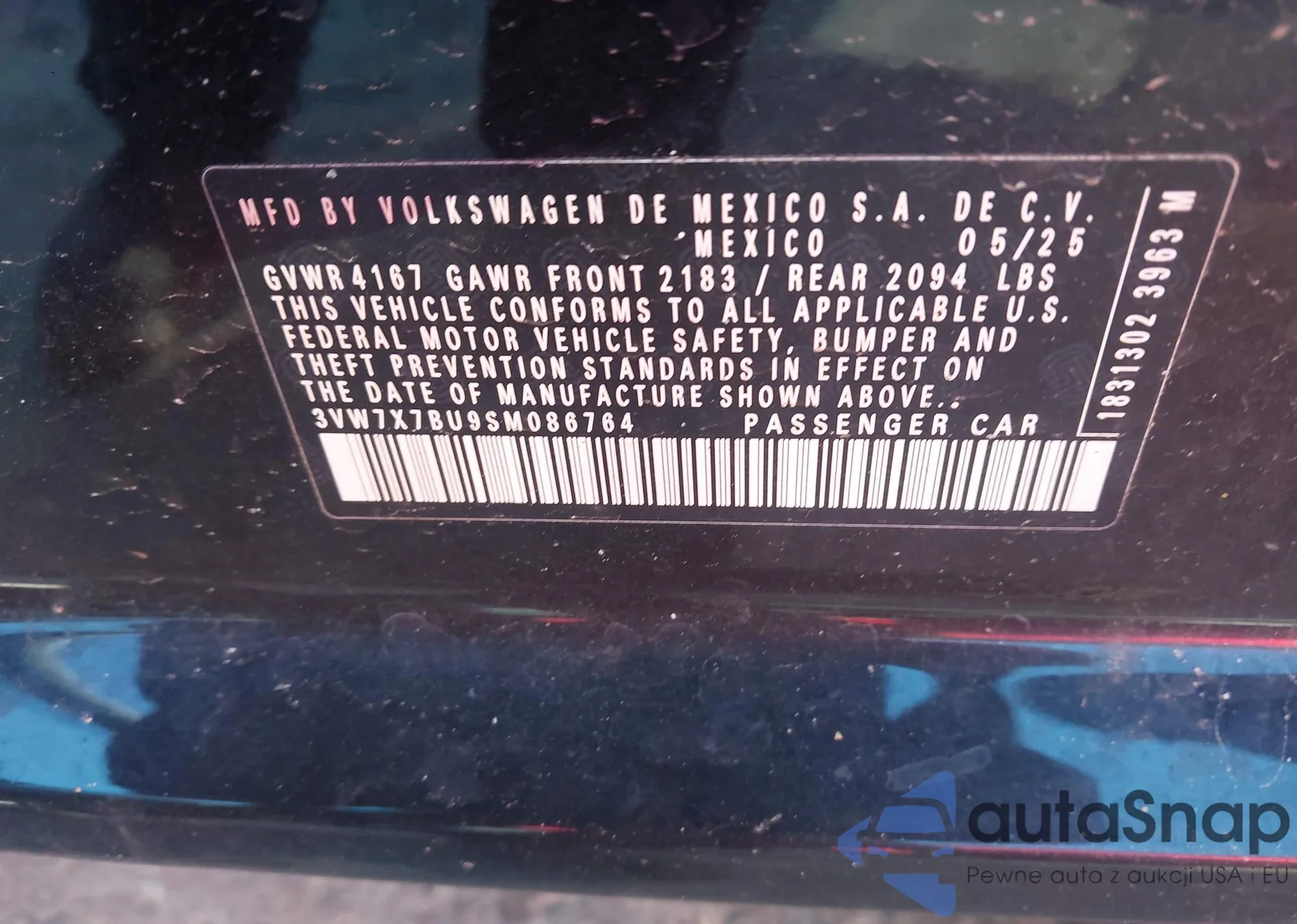 VIN: 3VW7X7BU9SM086764