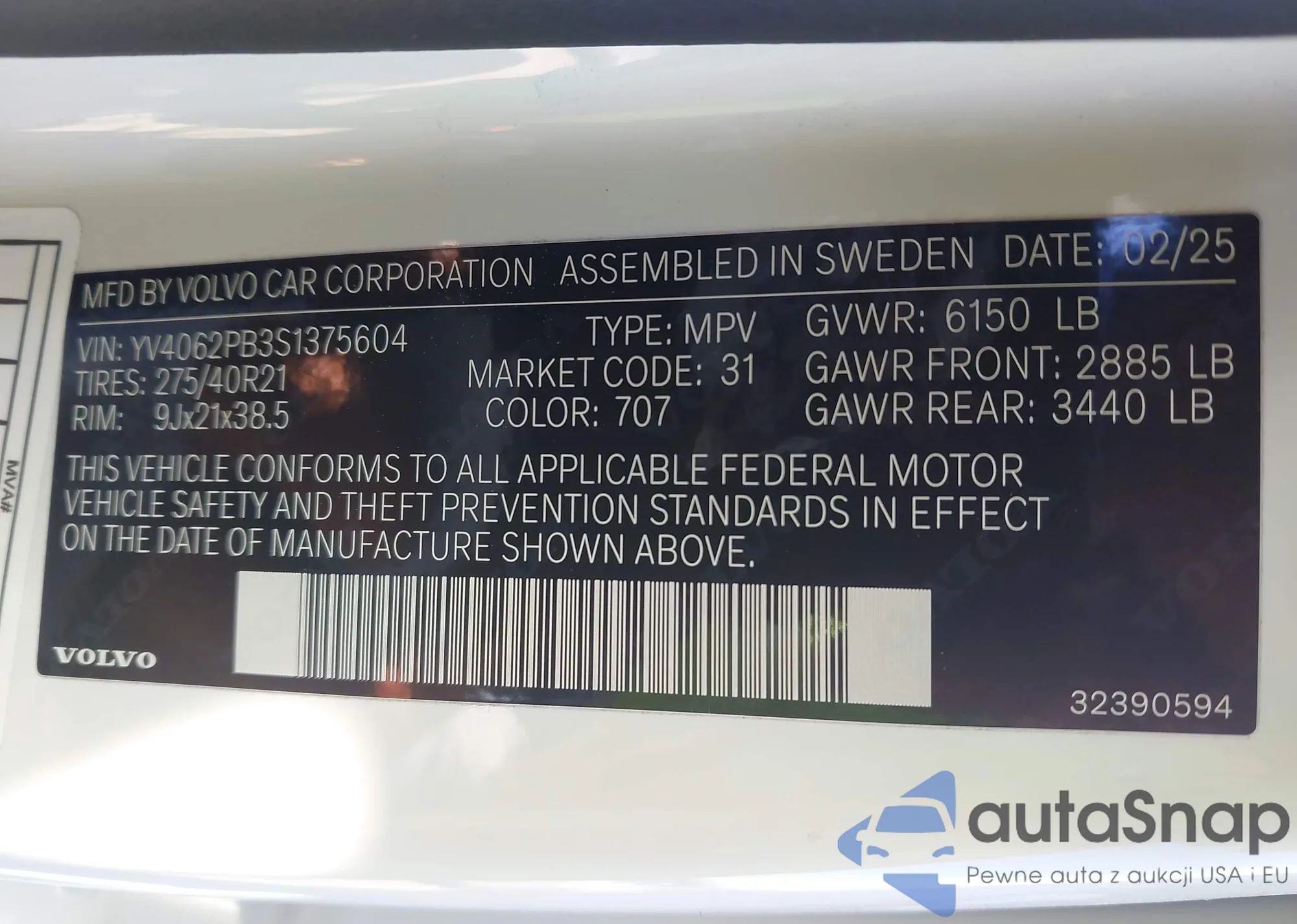 • VIN: YV4062PB3S1375604