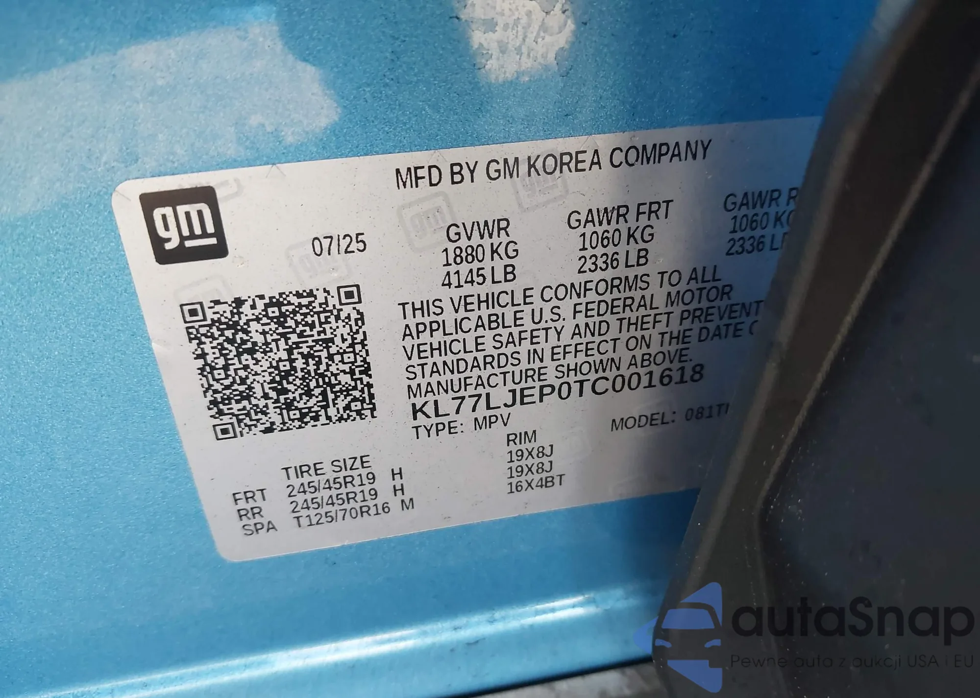 VIN: KL77LJEP0TC001618