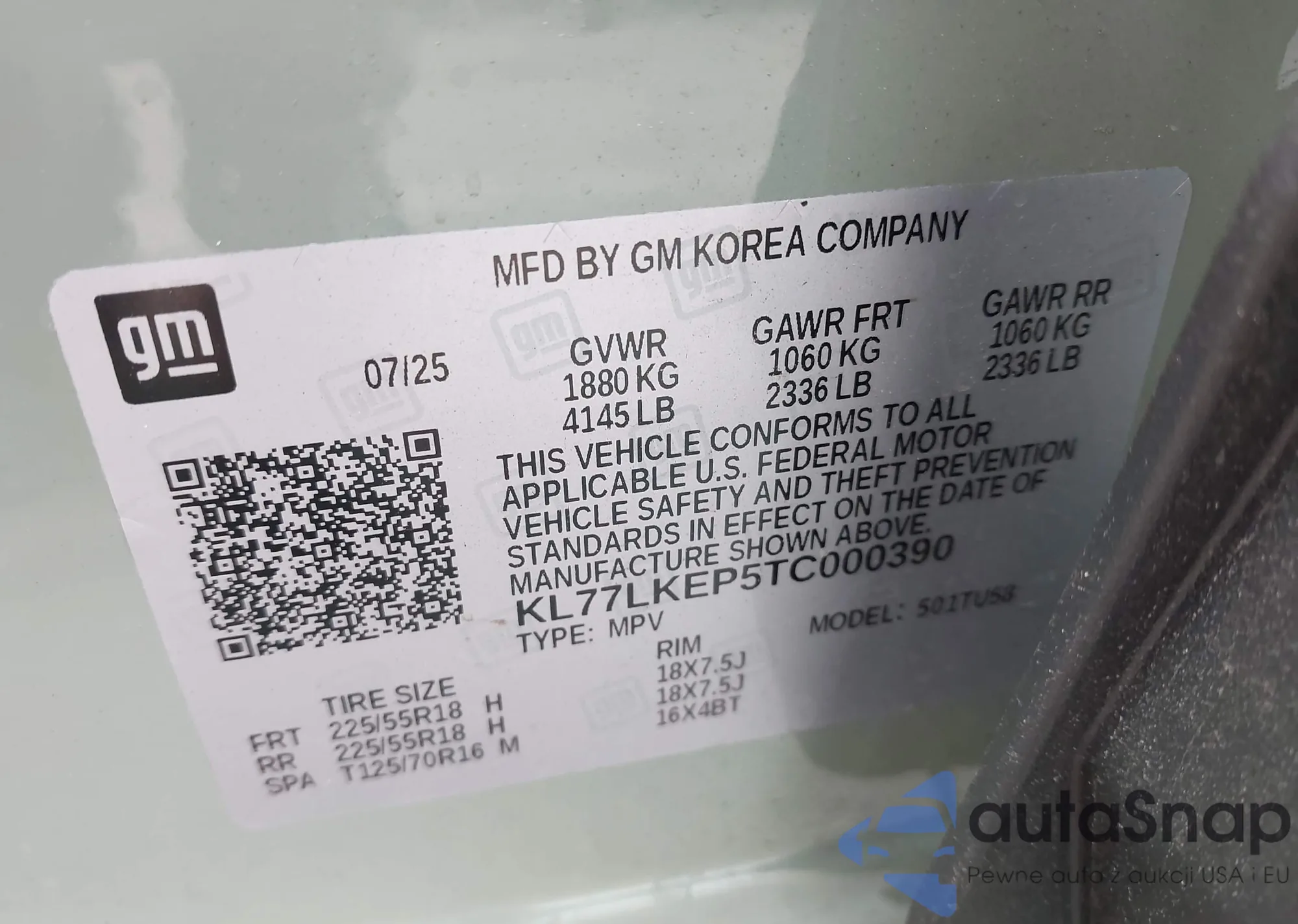 Автомобиль Chevrolet Trax 2026 (VIN KL77LKEP5TC000390) ранее не участвовал в торгах. Документы чистые, пробег соответствует или ниже среднего по рынку. Продаётся страховой компанией — рекомендуем покупку. Доставка в порт займет около 6–8 недель.