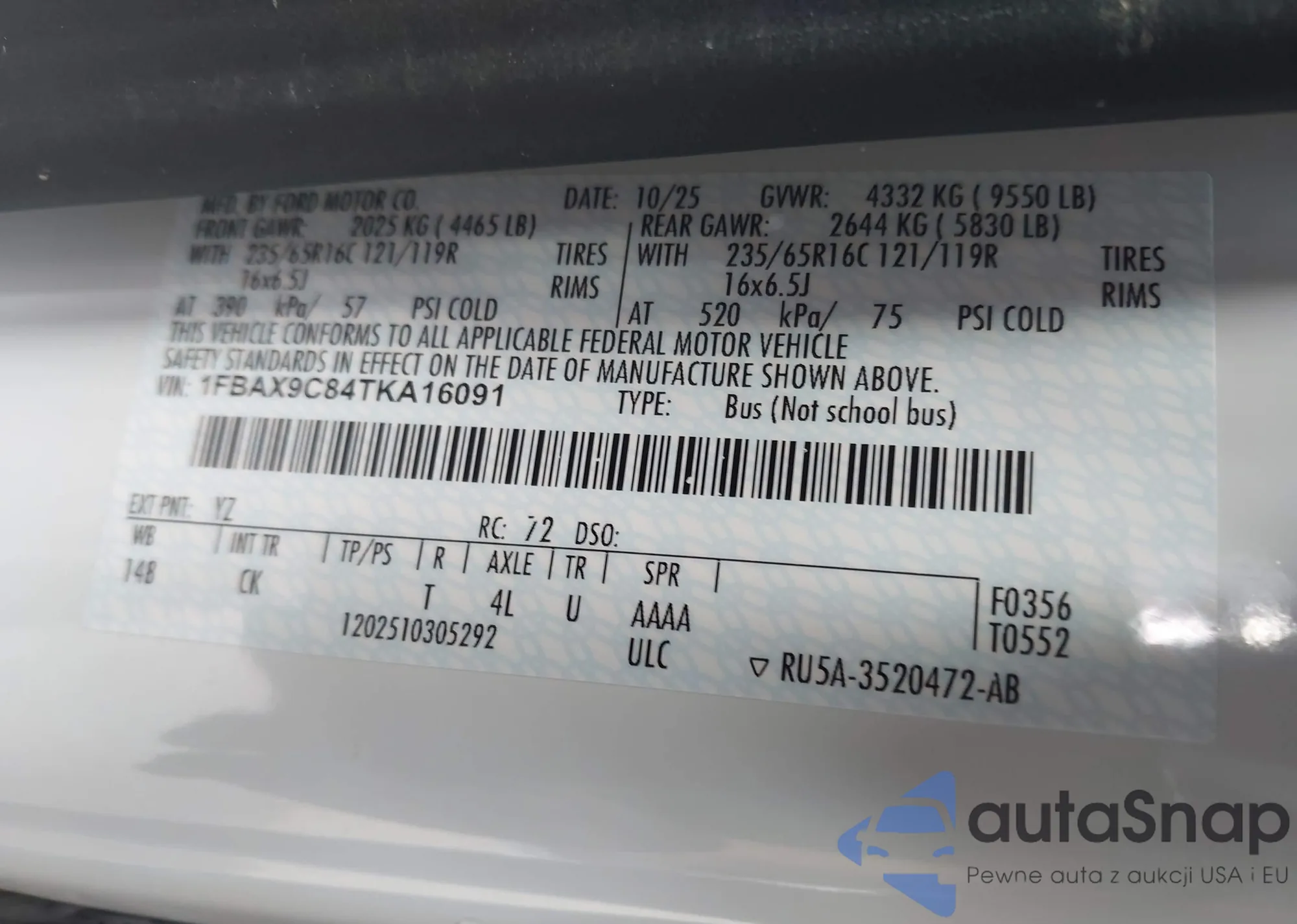 VIN: 1FBAX9C84TKA16091