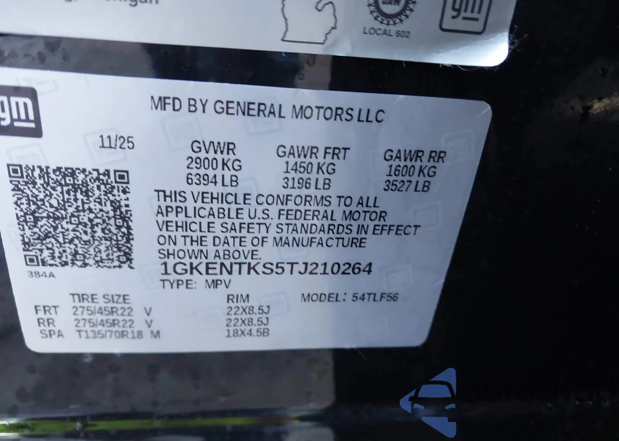 VIN: 1GKENTKS5TJ210264