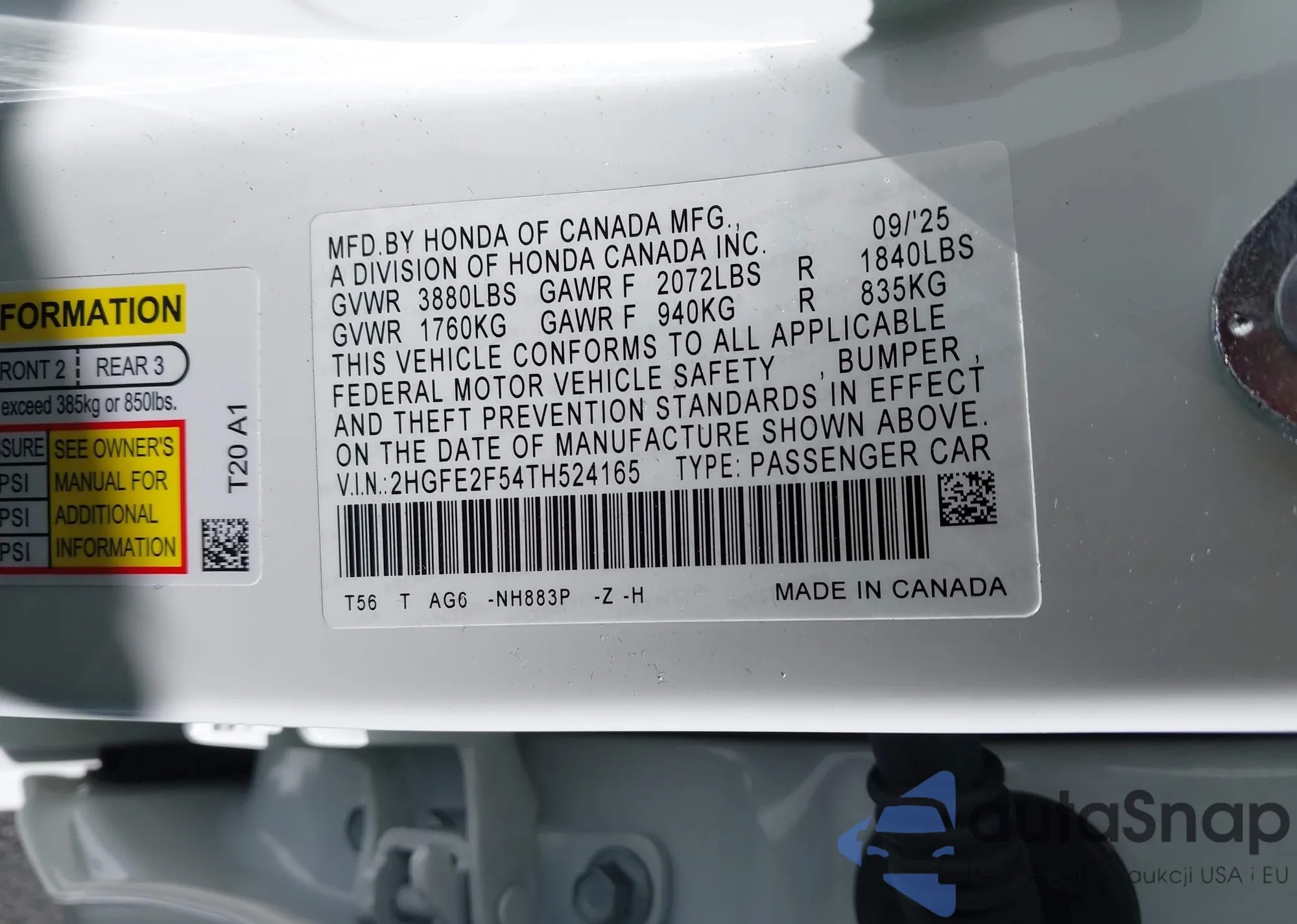 VIN: 2HGFE2F54TH524165