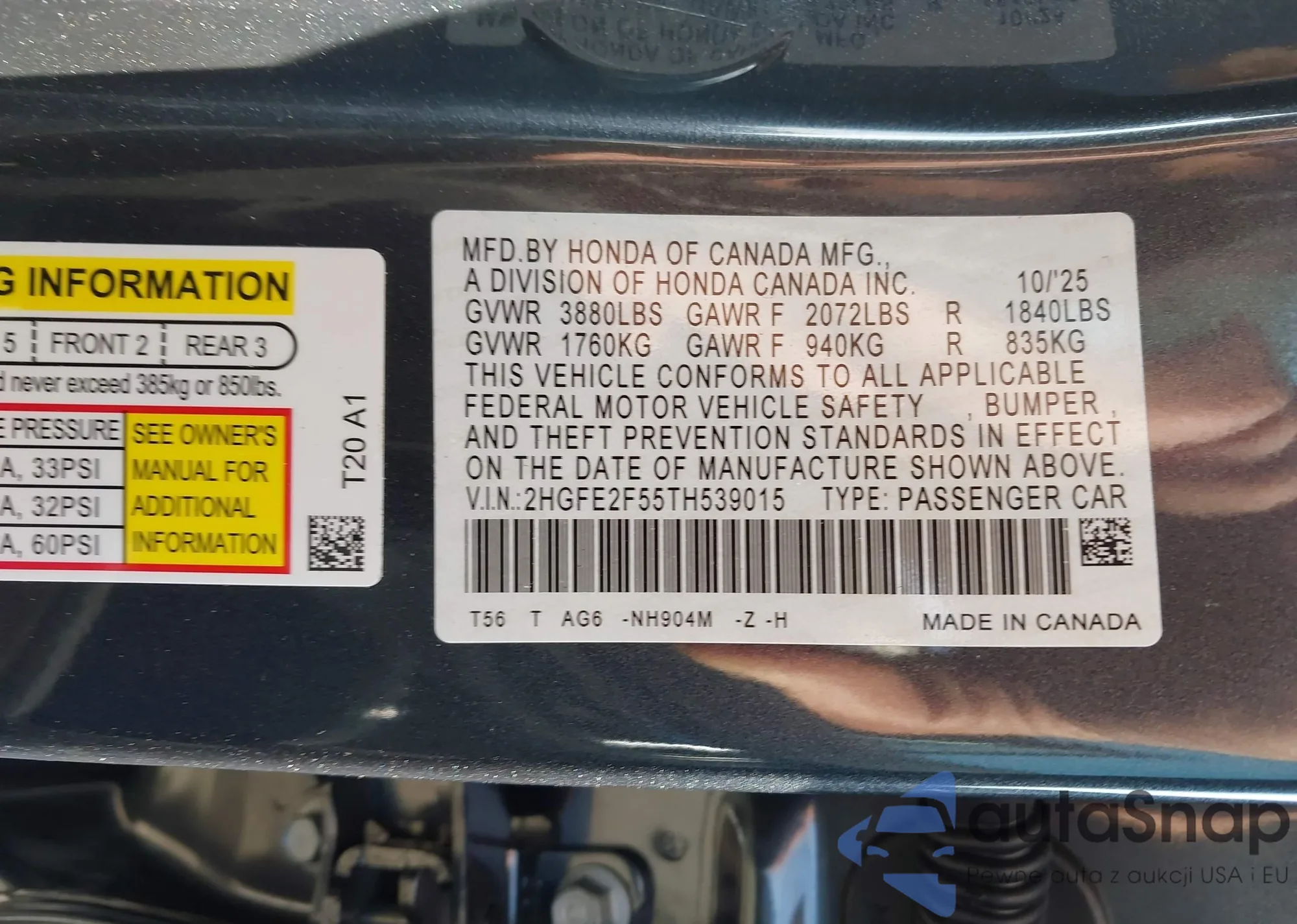 VIN: 2HGFE2F55TH539015