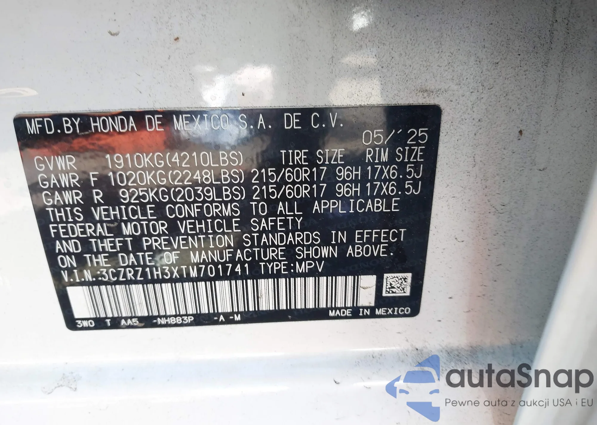 VIN: 3CZRZ1H3XTM701741
