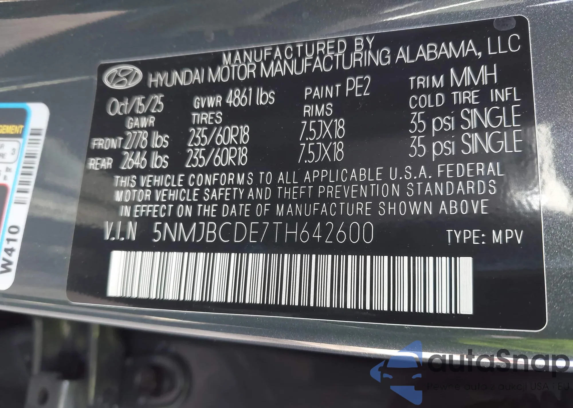 VIN: 5NMJBCDE7TH642600