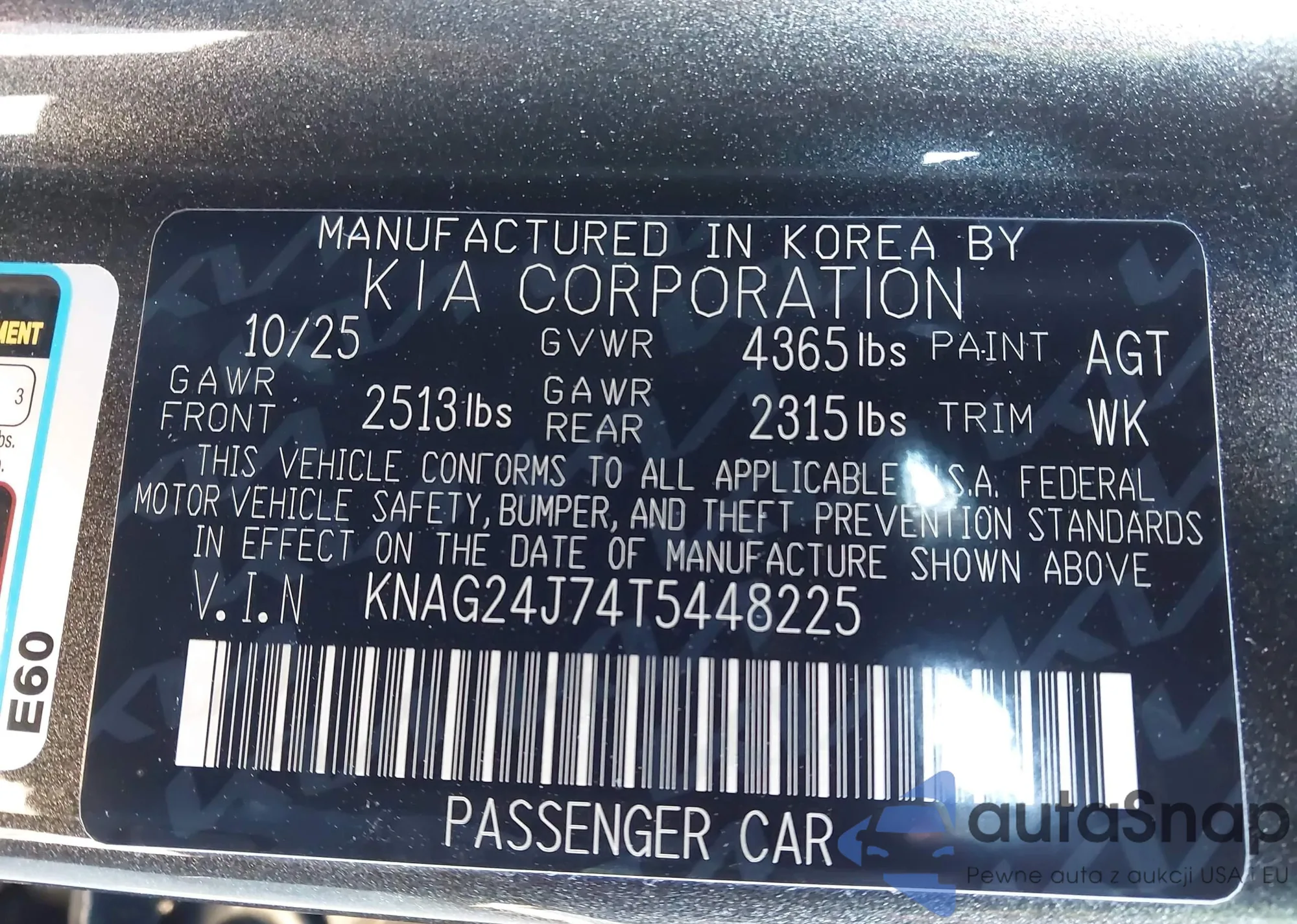 • VIN: KNAG24J74T5448225