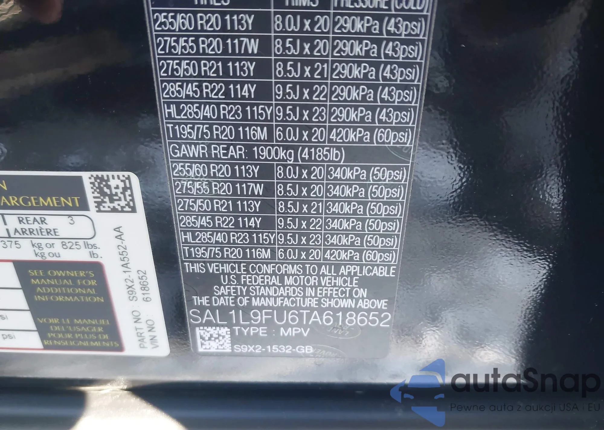 • VIN: SAL1L9FU6TA618652