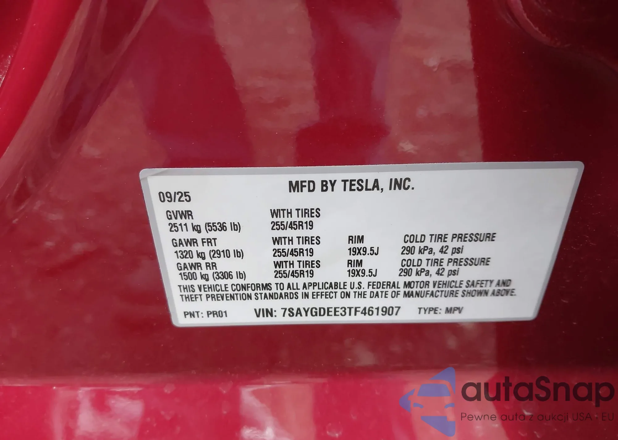 VIN: 7SAYGDEE3TF461907